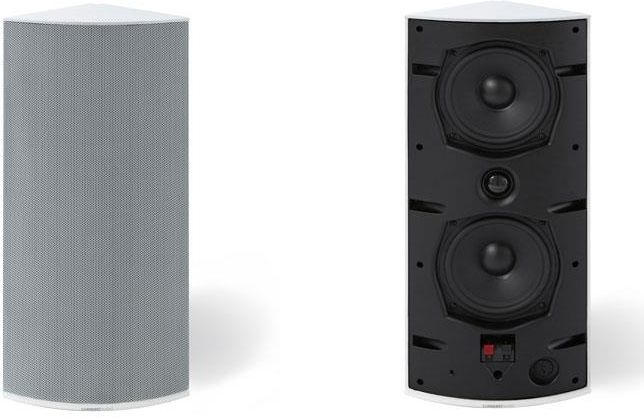 Ci4 to doskonale wyposażony, kompaktowy, pełno zakresowy głośnik 2-drożny o średniej mocy i pełnym paśmie basu. Projekt obudowy jest niezwykle dyskretny i oferuje doskonały dźwięk. Szerokie i jednolite rozchodzenie się dźwięku, oraz pełne pokrycie dźwiękiem może być osiągnięte przy niewielkiej liczbie głośników, co sprawia, żę Ci4 są szczególnie przystosowane do komercyjnych zastosowań instalacyjnych wewnątrz i na zewnątrz pomieszczeń. Opatentowana trójkątna obudowa zapewnia szybką i łatwą instalację. Zintegrowane punkty montażu pozwalają na dopasowanie obudowy do rogów pomiędzy ścianami lub sufitem bez uchwytów. Dla jeszcze łatwiejszej instalacji istnieje możliwość ich montażu na dwóch sliderach. Obudowy można ze sobą zestawiać powiększając pokrywanie dźwiękiem do 180, 270 lub 360 stopni. Złącza kabli są ukryte za maskownicą i przeprowadzane od tyłu obudowy, dzięki temu kable są niewidoczne zarówno przy montażu poziomym i pionowym. Ci4 to doskonałe rozwiązanie dla dźwięku tła w instalacjach w hotelach, kawiarniach i sklepach. Opatentowana obudowa posiada zintegrowane punkty mocowania umożliwiające montaż w narożnikach lub na ścianach i sufitach bez uchwytów. Dzięki certyfikatowi IP65 model Ci4 nadaje się do użytku zarówno w domu, jak i na zewnątrz. Kable są połączone na przedniej ściance głośnika, dzięki czemu terminal kablowy jest niewidoczny zarówno w zastosowaniach pionowych, jak i poziomych. Przełączalny obwód zabezpieczający dla głośnika wysoko tonowego zapewnia dodatkowe bezpieczeństwo podczas używania głośników z ich maksymalnym obciążeniem. Na głośnik składają się 4” woofer, pasywna 4” membrana basowa dla lepszego basu i 1” tweeter sparowany z falowodem dla jeszcze lepszej dyspersji dźwięku – nominalnie 100×100 stopni. Tweeter zabezpieczony jest przez uszkodzeniem poprzez przełączany obwód, który ogranicza dopływ zbyt wysokiej mocy do tweetera. Specyfikacja głośnika: ciśnienie akustyczne z 1 m przy 2,83 V to co najmniej 86 dB. Nominalna impedancja to 8 ohmów, minimalna to 7 ohmów@240 Hz. Moc znamionowa zgodnie z IEC 268-5 to co najmniej 60W. Pasmo przenoszenia to 70-20kHz +/- 3dB. Trójkątna obudowa nie ma widocznych złączy. Zastosowany kąt 90 stopni pozwala na montaż w rogu pomieszczeń i pomiędzy sufitem a ścianą bez uchwytów z wykorzystaniem zintegrowanych punktów mocujących lub zintegrowanych sliderów. Wykonana z plastiku ABS obudowa posiada klasę odporności przed ogniem EN54 oraz IP54 odporności na pył i wilgoć. Dla zabezpieczenia przed kradzieżą punkty instalacyjne ukryte są pod masko głośnika. Obudowa dostępna jest w kolorze białym lub czarnym. Wymiary (wysokość x szerokość x głębokość): 400 x 190 x 145 mm. Waga urządzenia 2,4 kg.