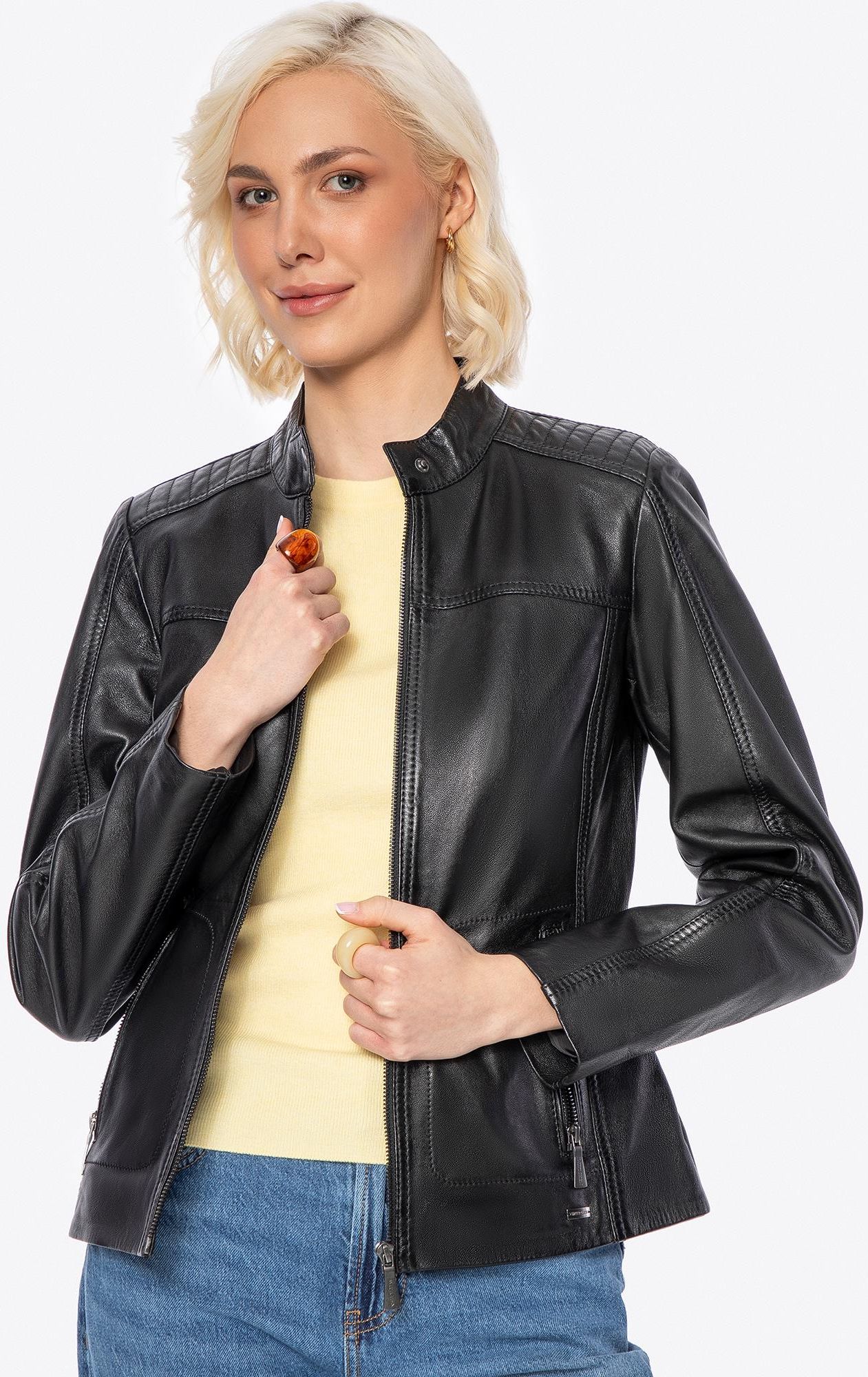 Damska kurtka ze skóry naturalnej z przeszyciami czarna Mszczonów