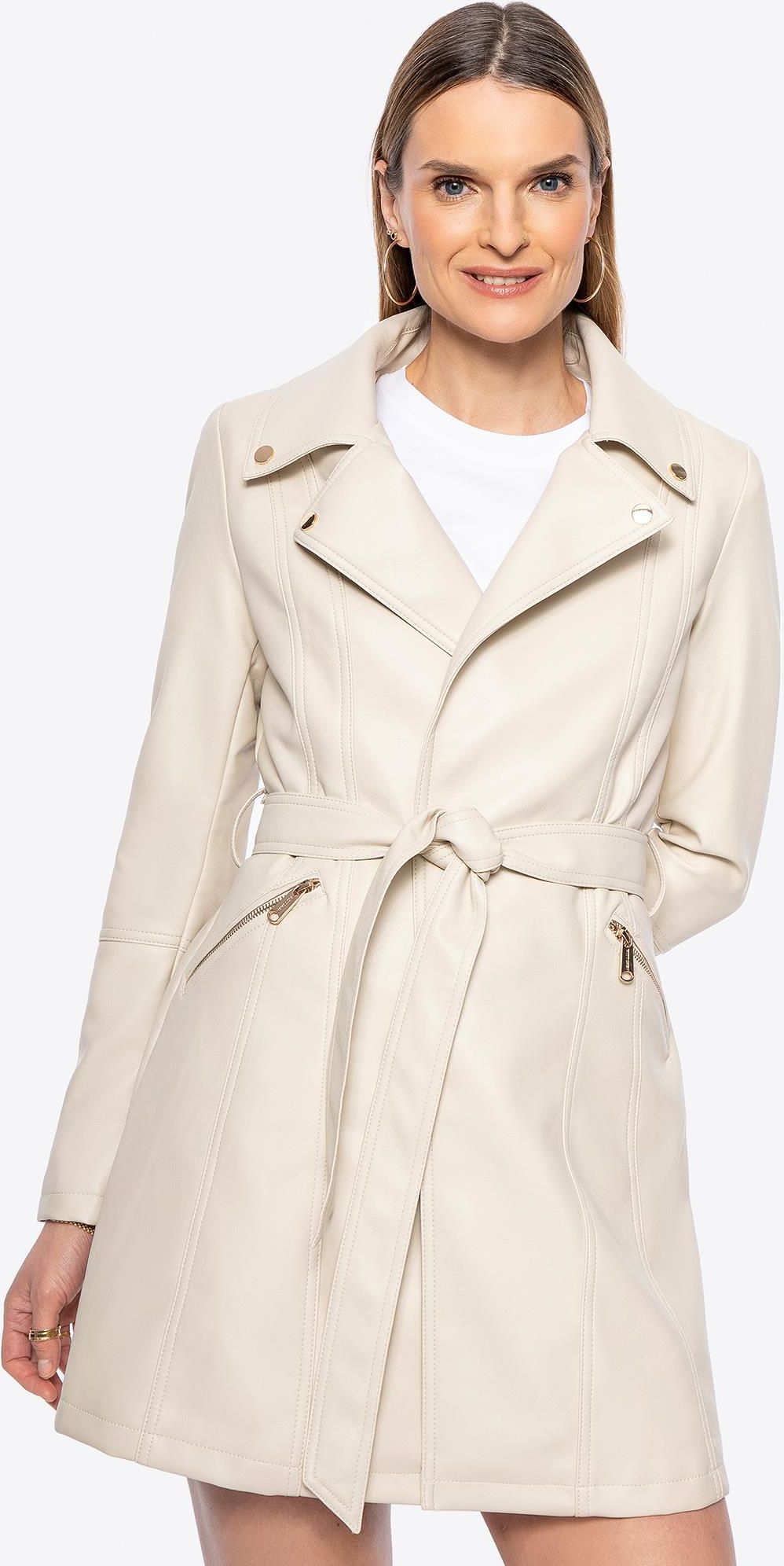 Opinie Damski płaszcz z imitacji skóry beżowy Mszczonów
