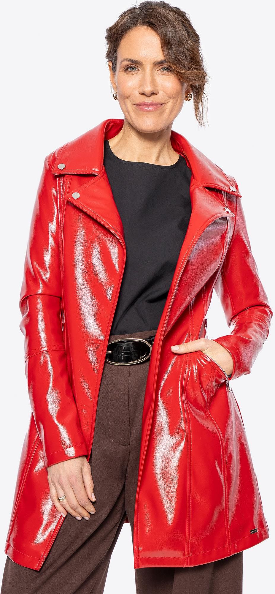 Opinie Damski płaszcz z imitacji skóry czerwony Mszczonów