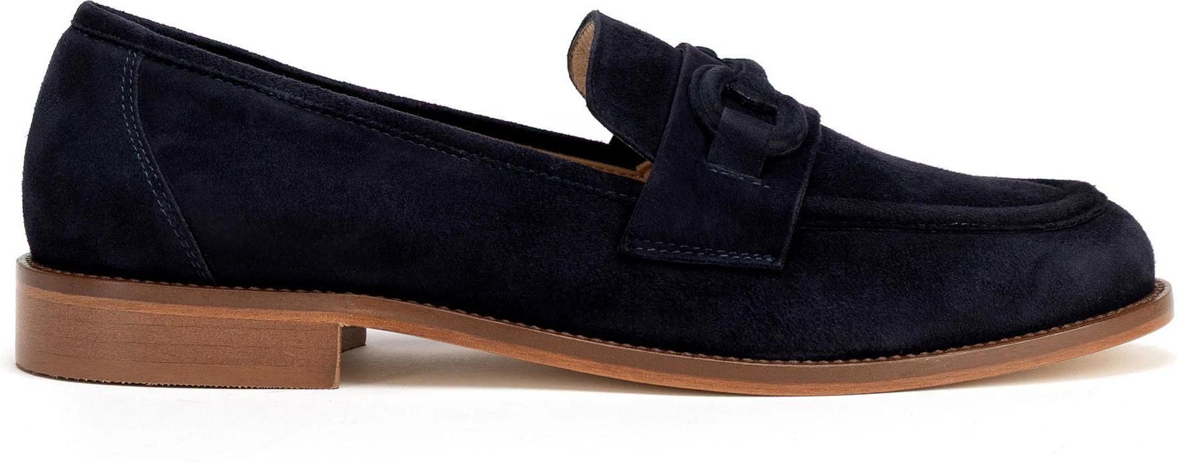 Damskie mokasyny ze skóry naturalnej z subtelną klamrą granatowe Mszczonów