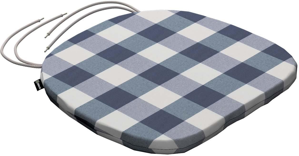Dekoria Poduszka na krzesło Bartek granatowo-biała krata (5,5x5,5cm) 40x37x2,5 cm Quadro Mszczonów