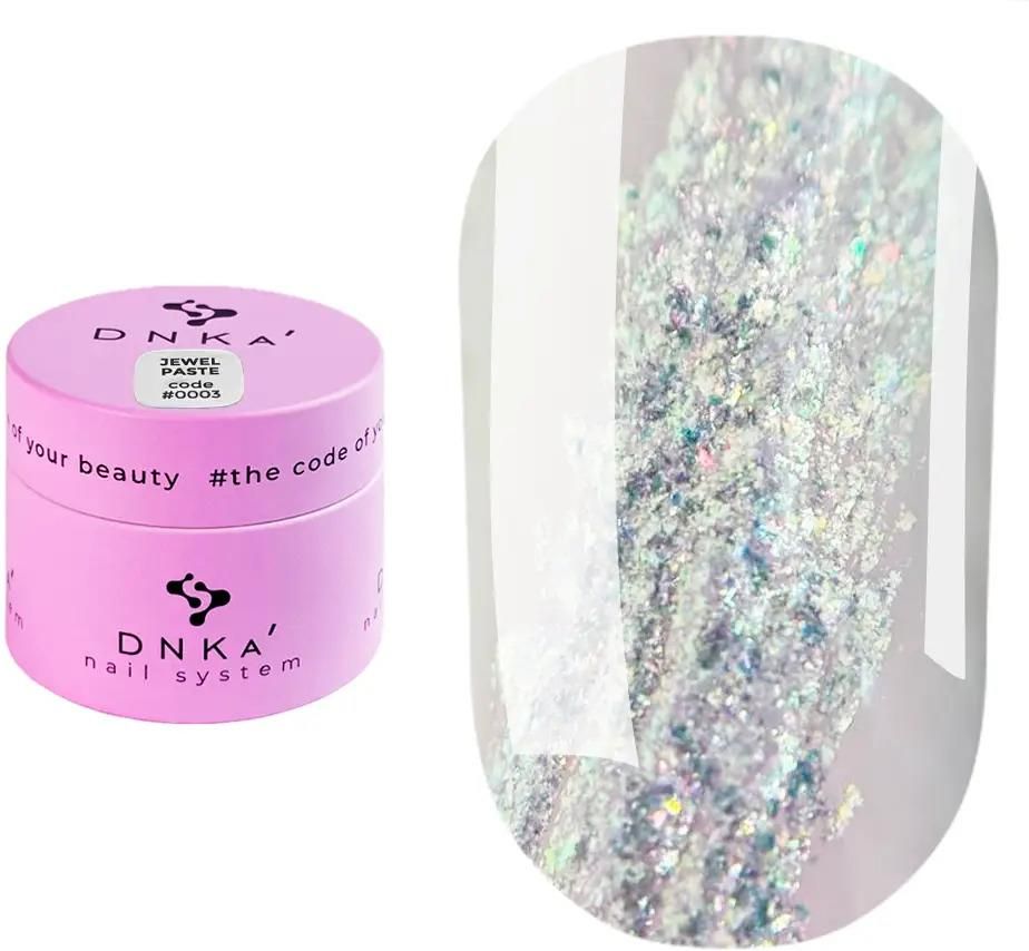 DNKa’ Gel Paste #0003 to wyjątkowa art-pasta stworzona do wykonywania teksturalnych wzorów, zdobień 3D i efektownych akcentów na paznokciach. Nasycona perłowymi pigmentami, brokatowymi cząsteczkami miki i połyskującymi drobinkami, zapewnia niepowtarzalny efekt, który mieni się w różnych odcieniach …
