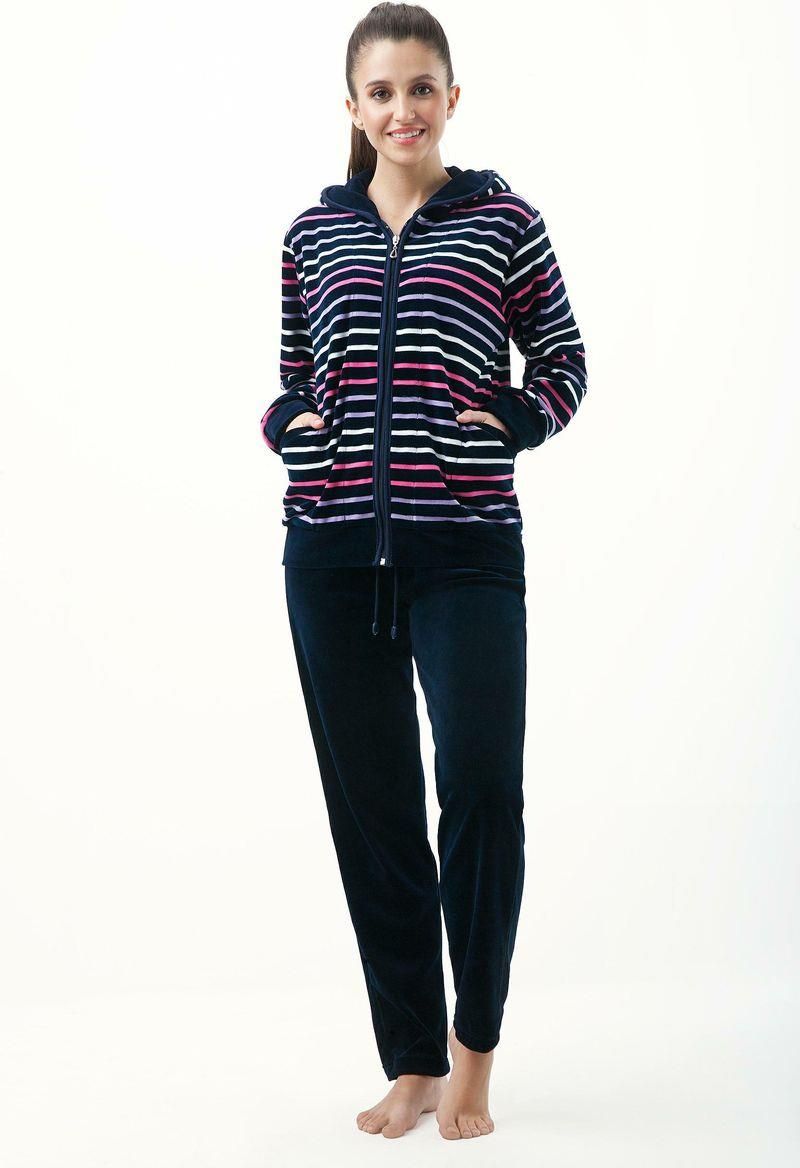 Dres damski długi 341 welurowy 2XL granatowy w paski spodnie jednobarwne bluza zapinana na zamek Luna jest bardzo starannie uszyty, z wielką dbałością o szczegóły. Nadaje się na wiele okazji: jako strój domowy, na spacer, kijki, rower, jako niezobowiązujący strój sanatoryjny czy szpitalny. Dres …