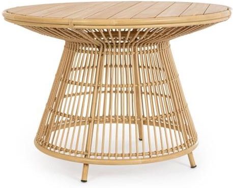 %description% WYMIARY Wysokość: 75 cm Średnica: Ø 110 cm MATERIAŁ Aluminium z efektem rattanu Drewno tekowe Elegancki stół ogrodowy Adelma z efektem rattanu Stół ogrodowy Adelma to wyważone połączenie subtelnego designu, naturalnego charakteru i funkcjonalności stworzonej z myślą o użytkowaniu na …