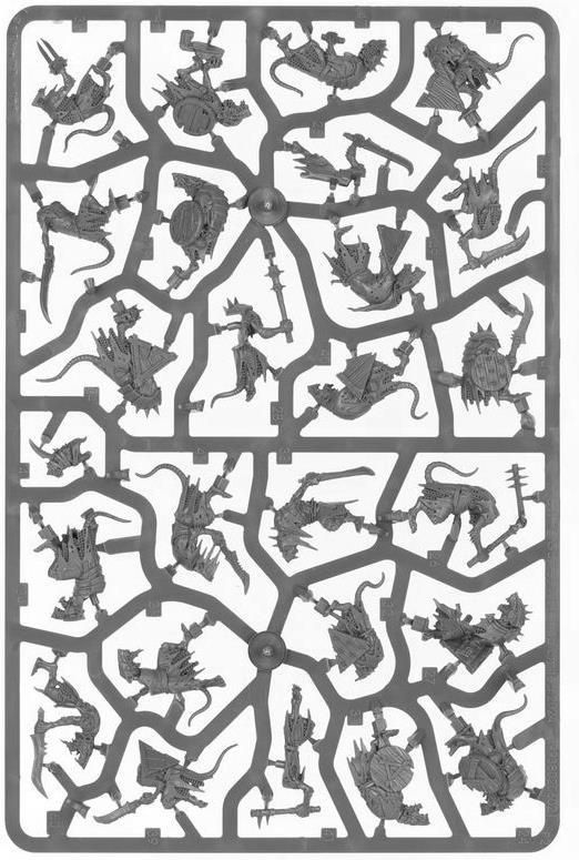 Clanrats mass into huge clawpacks, their vast numbers bolstering their courage and allowing them to surge across the battlefield and overwhelm the enemy, regardless of the hideous casualties they suffer along the way. Clanrats are the main front-line unit in a skaven army. They’re great for capturing objectives or overwhelming foes through sheer weight of numbers. In a skaven army, they’ll get more powerful as their unit gets larger, allowing them to tackle even the toughest foes. This kit contains all the components you need to build a 20-strong unit of Clanrats. You’ll be able to customise them with 20 individual bodies and clanshields, and there are 20 rusty spears and 16 rusty blades to arm them with. You’ll also find all the components you need to build a Clawleader, Standard Bearer and Bell-ringer for the unit. This kit is supplied in 85 plastic components, and comes with 20x 25mm round bases.