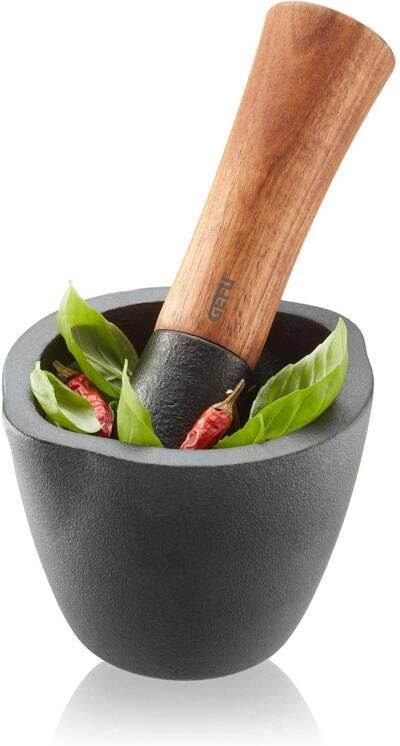 GEFU - X-PLOSION Mini moździerz 8.5 cm Żeliwny moździerz z serii X-PLOSION® to niezastąpione narzędzie dla miłośników aromatycznych ziół i przypraw. Wykonany w całości z żeliwa, posiada szorstką powierzchnię, co ułatwia uwolnienie intensywnych aromatów i smaków. W zestawie znajduje się również …