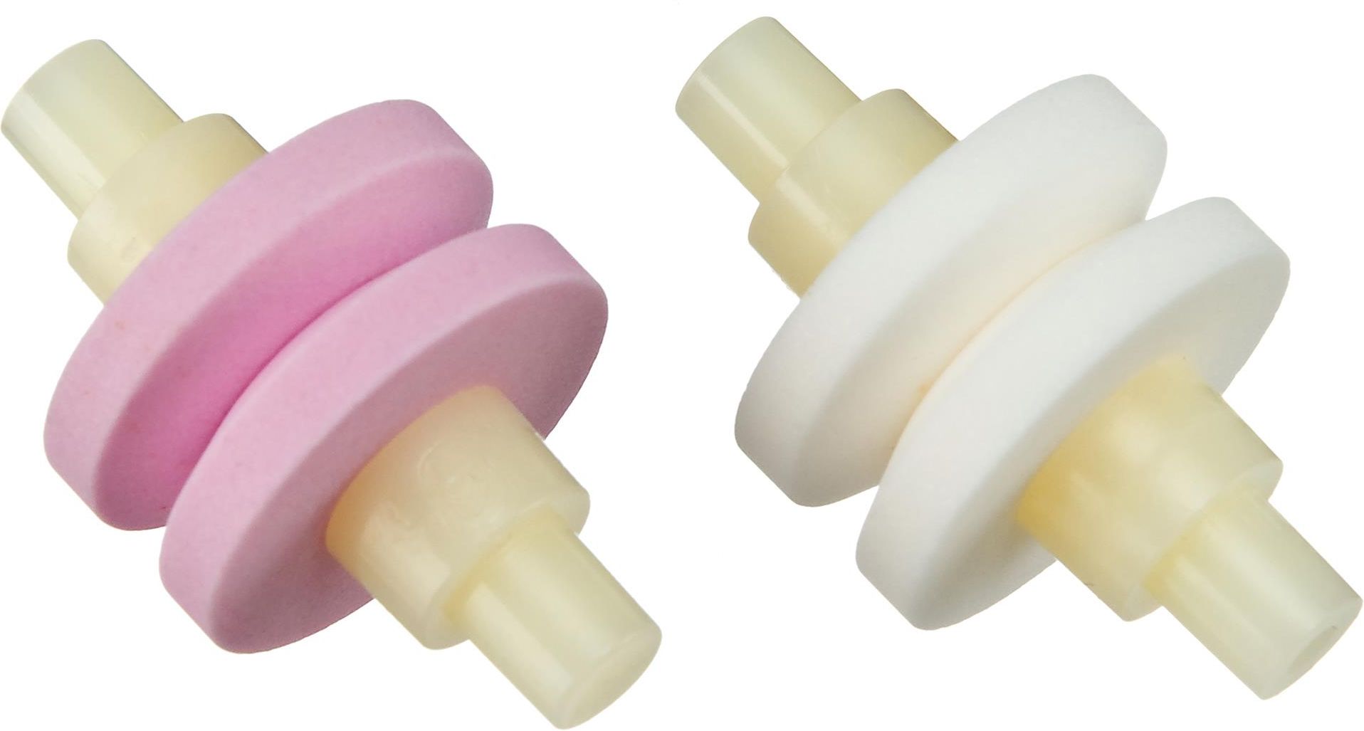MinoSharp Zestaw 2 kamieni do ostrzałek 220 MinoSharp Zestaw 2 kamieni do ostrzałek 220 Dwa zapasowe kamienie ostrzące przeznaczone dla ceramicznych ostrzałek wodnych MinoSharp do noży Global z serii 220. W zestawie znajduje się jedno koło białe (grube ziarno) i jedno koło różowe (średnie ziarno). …