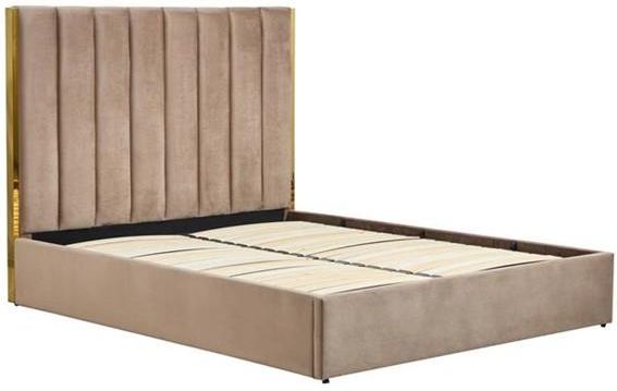 Łóżko Pola z pojemnikiem Łóżko Pola to mebel, który wyróżnia się eleganckim wyglądem i funkcjonalnością. Wykonane jest z wysokiej jakości materiałów, takich jak tkanina velvet i stal nierdzewna, to połączenie luksusu i trwałości. Ten mebel do samodzielnego montażu jest doskonałym wyborem dla tych, którzy cenią piękne i praktyczne rozwiązania. Co lepsze, łóżko Pola dostępne jest także w innych wersjach kolorystycznych, więc możesz wybrać to, które najlepiej wpasuje się w Twoją przestrzeń. Jednym z głównych atutów łóżka Pola jest pojemnik na pościel, który umożliwia przechowywanie pościeli lub ubrań, co przyczynia się do utrzymania porządku w pomieszczeniu. Mebel jest idealnym rozwiązaniem do sypialni lub pokoju hotelowego, gdzie organizacja przestrzeni ma duże znaczenie. Model prezentuje się w pięknym beżowym kolorze, który w połączeniu ze złotymi ramami na wezgłowiu dodaje mu szlachetności i elegancji. Powierzchnia spania o wymiarach 160x200cm zapewnia komfort i odpowiednią przestrzeń dla dwóch osób. Łóżko Pola jest dostarczane bez materaca, co daje możliwość wyboru i dopasowania go do swoich indywidualnych preferencji. Upewnij się, że to dobry wybór! Elegancki wygląd i trwałe materiały, takie jak tkanina velvet i stal nierdzewna. Praktyczny pojemnik na pościel, który pomaga w utrzymaniu porządku w pomieszczeniu. Łóżko bez materaca, dające możliwość indywidualnego wyboru. Łatwy samodzielny montaż. Piękny beżowy kolor i złote ramy na wezgłowiu, dodające szlachetności i elegancji.