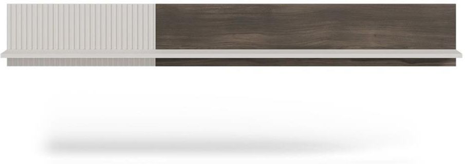 Półka wisząca z ryflowaniami RANDOM 2 P-2 kolor Kaszmir + orzech Półka wisząca RANDOM 2 to stylowy i praktyczny dodatek do każdego wnętrza, łączący nowoczesny design z wysoką funkcjonalnością . Jej elegancka kolorystyka – subtelny kaszmir, ciepły orzech i głęboka czerń – doskonale komponuje się zarówno z klasycznymi, jak i współczesnymi aranżacjami, dodając pomieszczeniu wyjątkowego charakteru. Wykonana z MDF-u okleinowanego oraz płyty meblowej okleinowanej , półka cechuje się solidnością i odpornością na uszkodzenia , co zapewnia długotrwałe użytkowanie. Stylowe wykończenia z polipropylenu podkreślają jej nowoczesny wygląd, czyniąc ją nie tylko funkcjonalnym, ale i dekoracyjnym elementem wystroju. Idealnie sprawdzi się jako miejsce na książki, dekoracje, pamiątki czy elementy multimedialne , pomagając w organizacji przestrzeni i podkreślając unikalny styl wnętrza. Cechy produktu Nowoczesny design – harmonijne połączenie kaszmiru, orzecha i czerni Trwałe materiały – MDF okleinowany i płyta meblowa gwarantują wytrzymałość Funkcjonalność – doskonała do przechowywania książek, dekoracji i akcesoriów Uniwersalny styl – pasuje zarówno do salonu, sypialni, jak i biura Łatwy montaż – prosty system zawieszenia zapewnia szybkie i bezproblemowe przymocowanie do ściany Dodaj do swojego wnętrza elegancję i praktyczność z półką wiszącą RANDOM 2 – idealnym połączeniem stylu i użyteczności , które podkreśli charakter Twojej przestrzeni. Styl: Nowoczesny / Modern Dostępna kolorystyka: Orzech + Kaszmir Wysokość: 25 Szerokość: 180 Głębokość: 20 Materiał: MDF laminowany Kraj produkcji: Polska