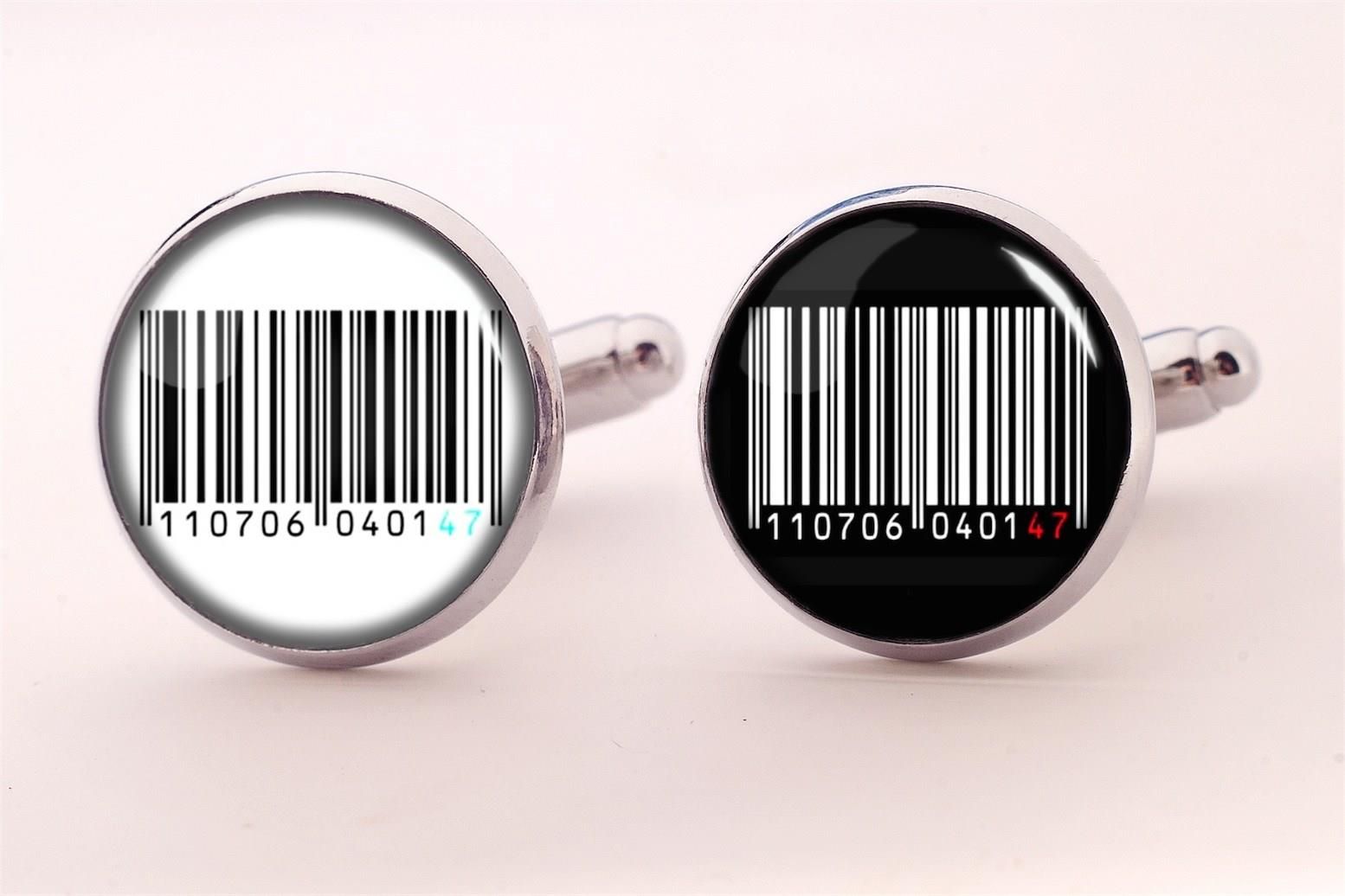 • filmowe, hitman, kod kreskowy, prezent ślubny, ślubne, spinki do mankietów, prezent, męskie, dla faceta, mężczyzna, egginegg, biżuteria z grafiką