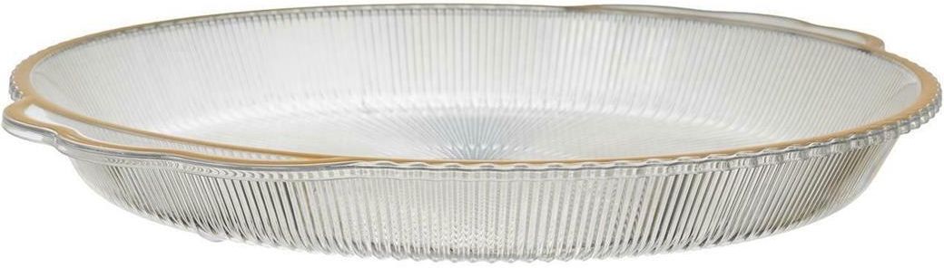 Taca Mirage 38,5cm owalna złoty brzeg plastikowa Taca Mirage 38,5cm - elegancja i funkcjonalność w jednym Prezentowana Taca Mirage o średnicy 38,5 cm to połączenie elegancji i funkcjonalności. Wykonana z tworzywa sztucznego PET, cechuje się lekkością i wytrzymałością, a także łatwością w …