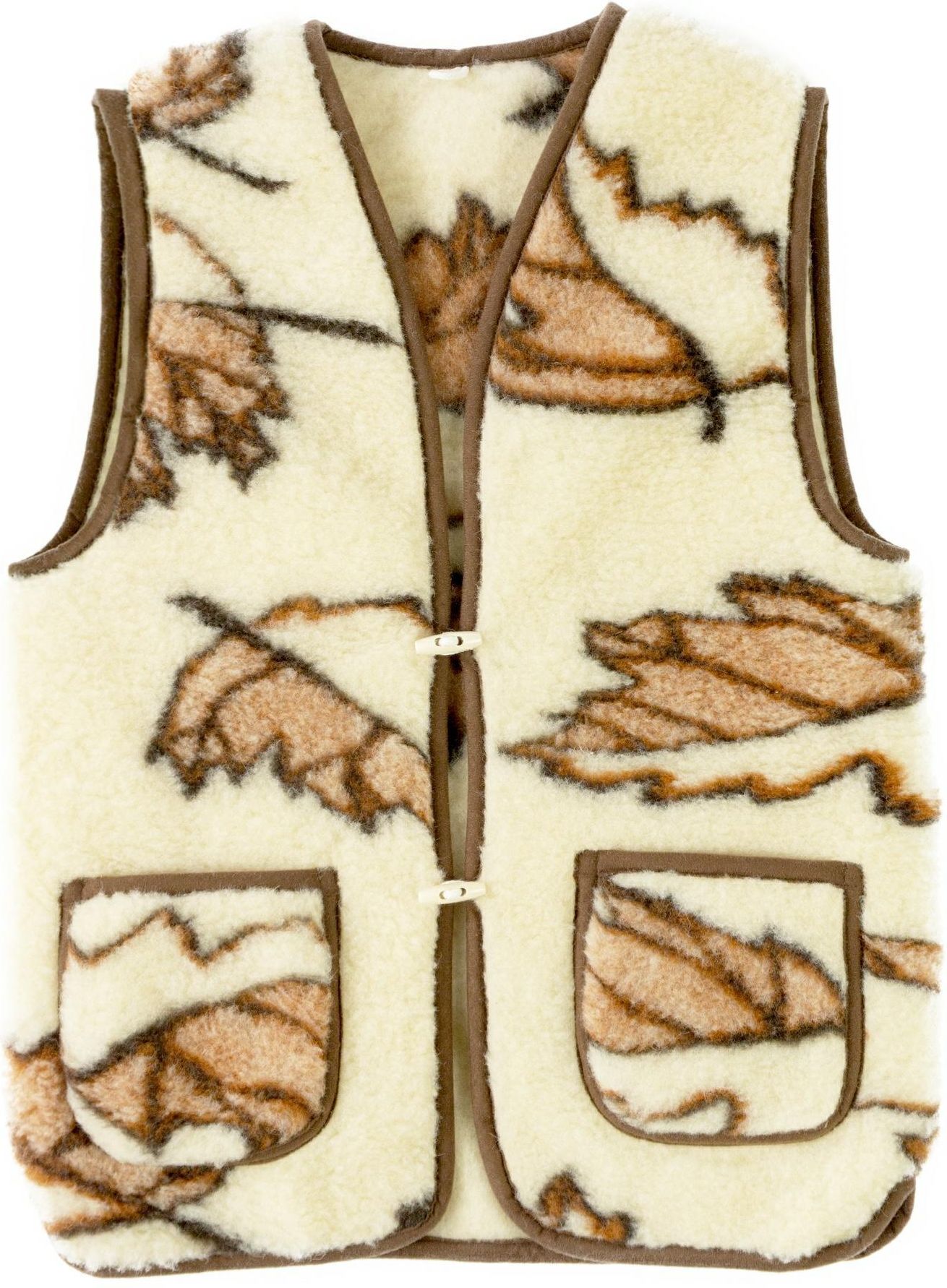 Kamizelka MILANO BIS wzór NAPOLEON (rozmiar S) – komfort i naturalne ciepło Kamizelka MILANO BIS została wykonana ze 100% naturalnej wełny merynosów. Pokrywa ją unikalny wzór liścia dębu – NAPOLEON. Kamizelka w tonacji ecru i brązów została wykończona bawełnianą lamówką. Zapięcie na dwa guziki Dwie kieszonki Lekka i ciepła – pojedyncza warstwa runa owczego Dzięki właściwościom termoizolacyjnym, reguluje temperaturę i nadaje się do noszenia przez cały rok. Rozmiar S (170 cm wzrostu) Obwód klatki piersiowej: 92 cm Obwód bioder: 98 cm Długość kamizelki: 68 cm Zastosowanie zdrowotne Kamizelka może wspomagać leczenie: Chorób kostno-stawowych i mięśniowych Przykurczy mięśni Stanów pourazowych Nerwobóli, rwy kulszowej Profilaktyki odleżyn Termoterapii – utrzymanie ciepła po masażu Kamizelka MILANO BIS NAPOLEON to doskonały wybór na chłodniejsze dni. Zapewnia komfort i zdrowotne właściwości wełny.