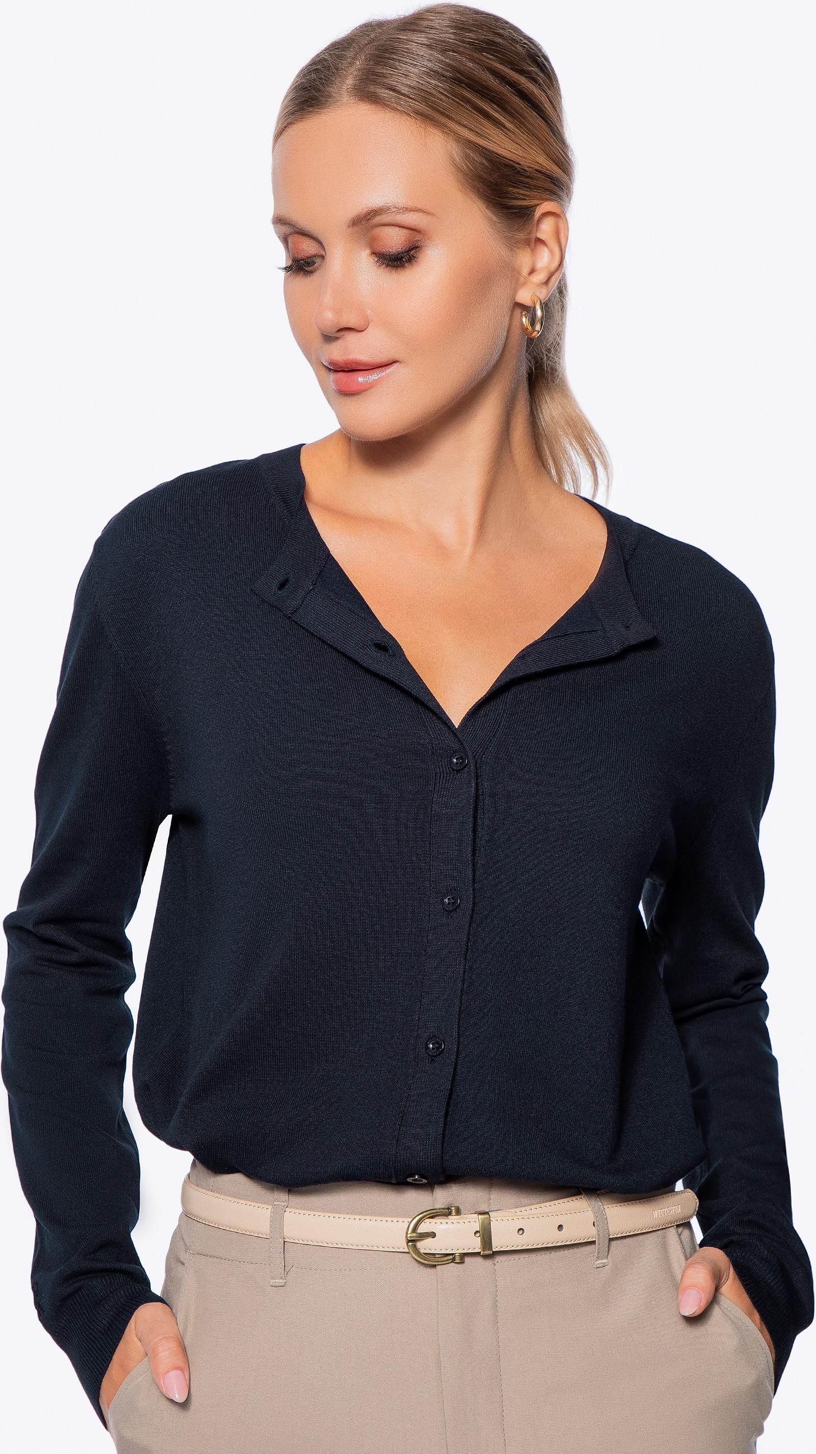 Kardigan damski z wiskozy i nylonu granatowy Mszczonów