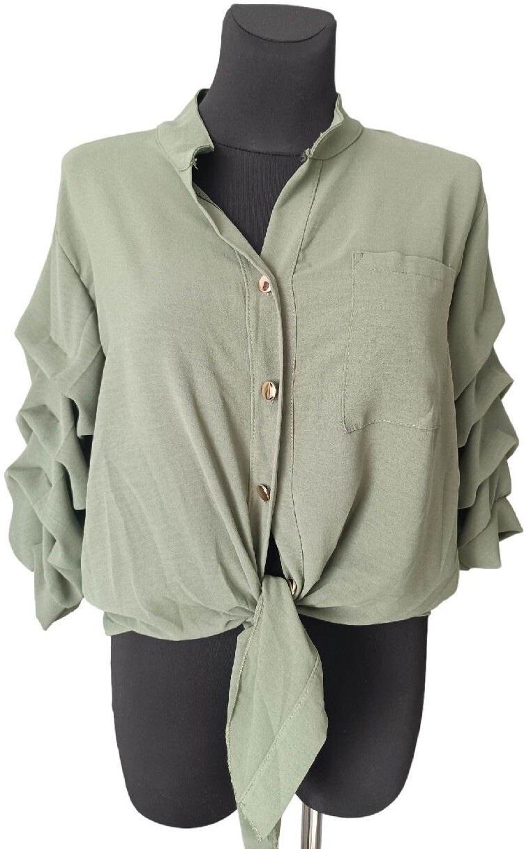 Koszula damska z ozdobnym rękawem - khaki Mszczonów