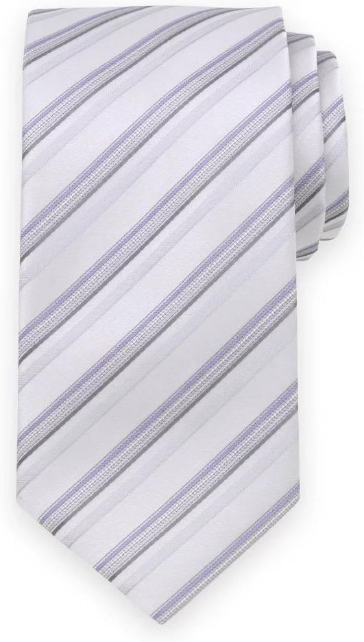 Klasyczny krawat z microfibry Krawat jest istotnym elementem stylu, za pomocą którego elegancko ubrany mężczyzna może wnieść do swojej garderoby nieco koloru. Powinien być dobierany do karnacji, garnituru oraz temperamentu mężczyzny. Microfibra to tkanina powstała z bardzo cienkich włókien poliamidowych i poliestrowych. Kształt tego włókna sprawia, że dzięki odpowiednim splotom uzyskujemy tkaninę bardzo wytrzymałą. Imituje jedwab, lecz jest tkaniną zdecydowanie lżejszą. Można ją poddawać czyszczeniu chemicznemu i odplamianiu. Dodatkowe informacje Standardowa długość 150 cm 8 cm szerokości w dużym czubie 100% microfibra o gęstym splocie Delikatny połysk Klasyczny modny krój Można czyścić chemicznie