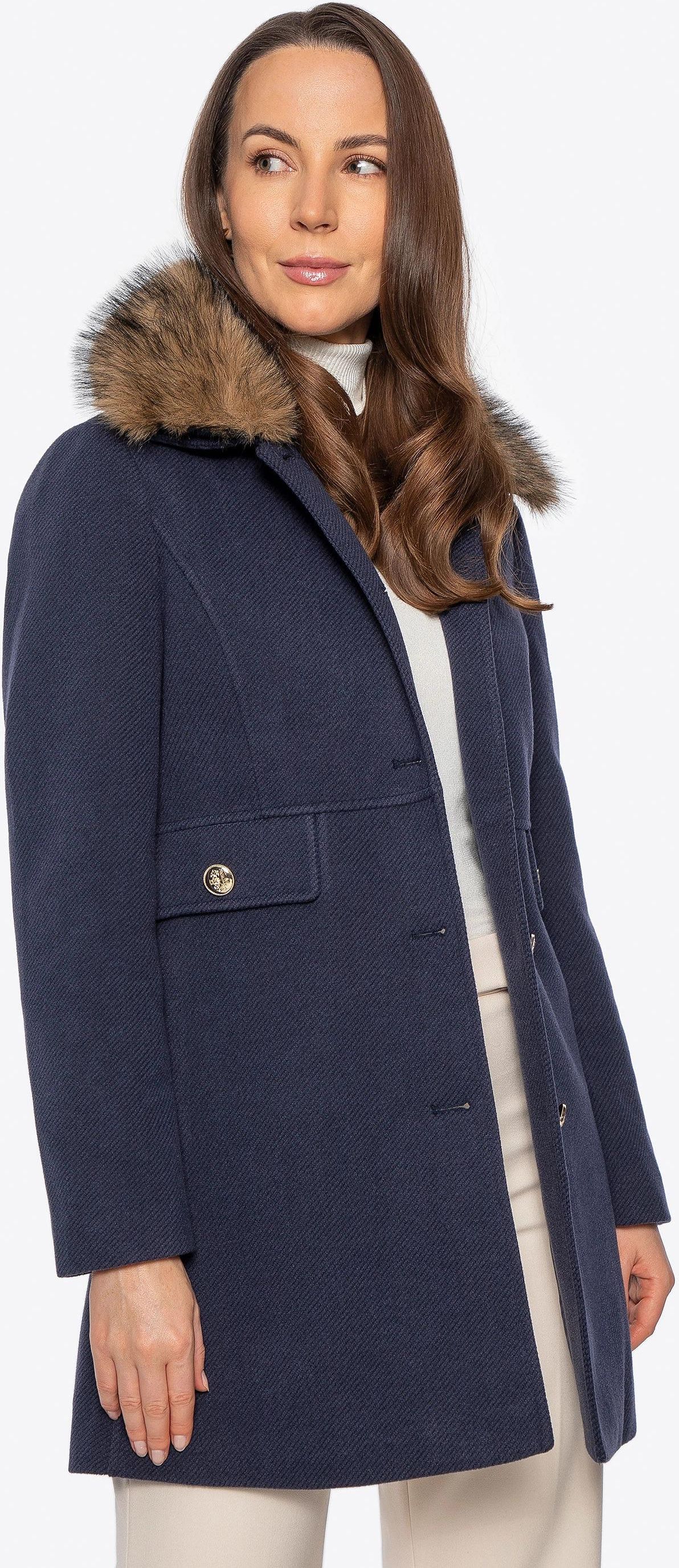 Krótki płaszcz damski z futerkowym kołnierzem granatowy Mszczonów