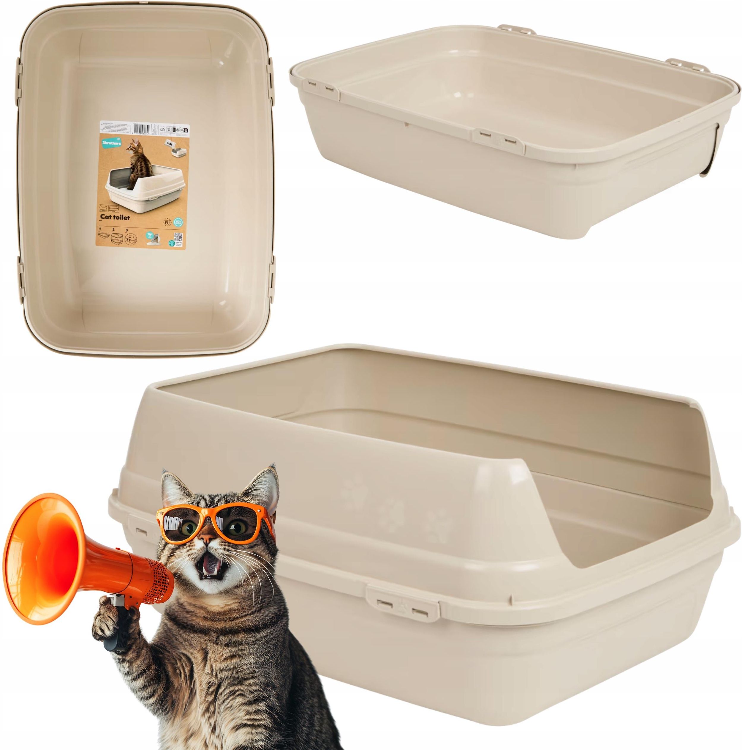 Kuweta dla kota z materiałów z recyklingu 1,5l eko praktyczna wygodna Zadbaj o komfort swojego pupila i środowisko jednocześnie! Ta otwarta kuweta dla kota została wykonana w 100% z materiałów pochodzących z recyklingu, łącząc funkcjonalność z troską o naturę. Idealna dla kotów, które cenią sobie przestrzeń i swobodę podczas załatwiania potrzeb. Najważniejsze zalety Ekologiczna produkcja – wykonana w całości z tworzywa z recyklingu Otwarta konstrukcja – zapewnia wygodny dostęp i komfort użytkowania dla kota Lekka i łatwa do czyszczenia – prosta forma ułatwia opróżnianie i mycie Kompaktowy rozmiar – doskonała do mieszkań i mniejszych przestrzeni Specyfikacja produktu Wymiary: 37 × 43 × 21 cm Pojemność: 1,5 l Kolor: Beżowy Materiał: 100% z recyklingu Przeznaczenie: Dla kotów 🐾 Ekologia i wygoda w jednym! Ta kuweta to idealny wybór dla osób, które chcą zapewnić swojemu kotu czyste i wygodne miejsce, a jednocześnie dbać o środowisko. 🌍 Prosty wybór dla Ciebie, wielka ulga dla planety!