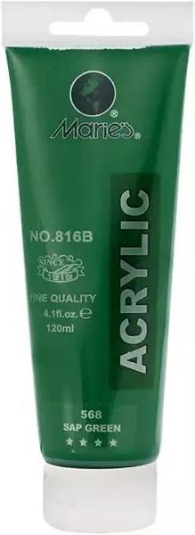 Charakterystyka farby akrylowej Maries Farba akrylowa Maries charakteryzuje się doskonałymi właściwościami schnącymi. Jej charakterystyczną cechą jest efektywne i szybkie schnięcie bez ryzyka pękania. Dzięki temu farby te są niezwykle trwałe i odporne na wilgoć. Barwa i właściwości farby Kolory farb Maries cechują się intensywnością i trwałością, a także odpornością na blaknięcie. Jest to szczególnie ważne dla artystów poszukujących produktów o doskonałej jakości. W przypadku tej farby akrylowej mamy do czynienia z barwą zieloną, która wykazuje się głębią i nasyceniem koloru. Zastosowanie farby akrylowej Farba Maries jest uniwersalna - doskonale sprawdza się do malowania na różnych powierzchniach. Nadaje się do pracy na papierze, drewnie, a także materiałach, cemencie czy bambusie. Po użyciu, pędzle z łatwością można oczyścić, wystarczy zamoczyć je w ciepłej wodzie. Opakowanie i pojemność farby Produkt dostępny jest w trwałej, aluminiowej tubce o pojemności 120 ml. Tubka zabezpiecza farbę przed wysychaniem, a jednocześnie zapobiega ulatnianiu się zapachu farby. Swoją konstrukcją gwarantuje trwałość i ochronę przed zniszczeniem. EAN: 6901893033233