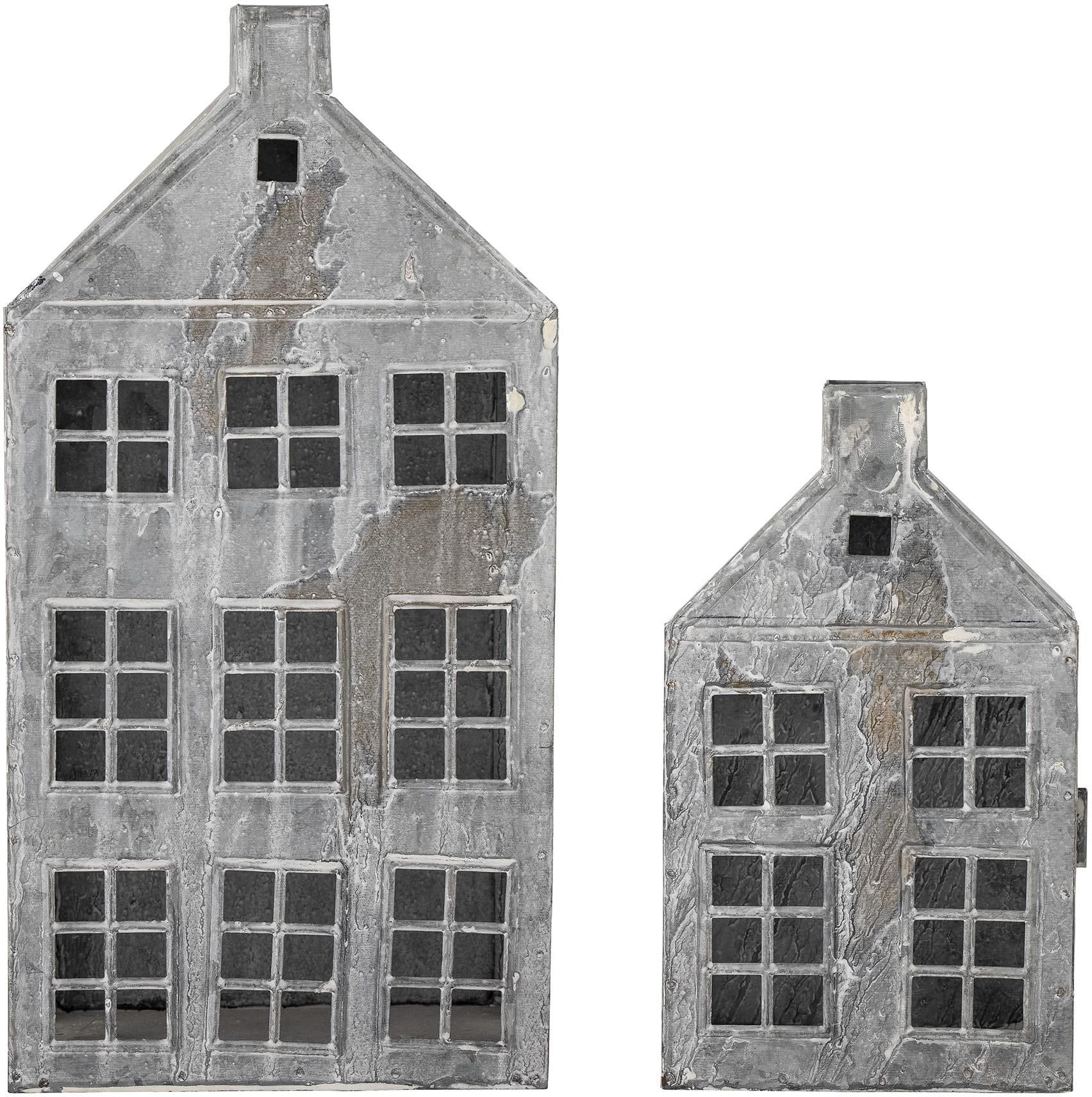 Zestaw dwóch przytulnych latarni Heidrun w kształcie dwóch małych domków. Wykonane są z metalu w szarym odcieniu. Małe okna i drzwi wprowadzą przytulność i rozświetlą ciemne wieczory. Podczas użytkowania można je przechowywać jedna w drugiej. 14,5x8xH23 cm/18x11xH35,5 cm, zestaw 2 szt.