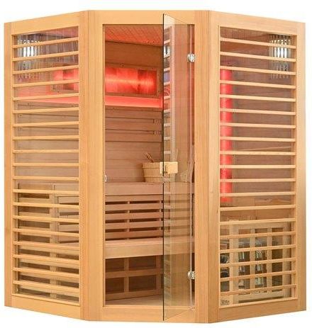 Sauna fińska Mazur model MO-TS4B wymiary 180X180X190 cm. Sauna sucha wykonana z drewna sosny kanadyjskiej. Sauna zawiera kamienie z soli himalajskiej nie tylko pełnią funkcję estetyczną jako element dekoracyjny w saunach, ale także mogą przynieść pewne potencjalne korzyści zdrowotne dla użytkowników