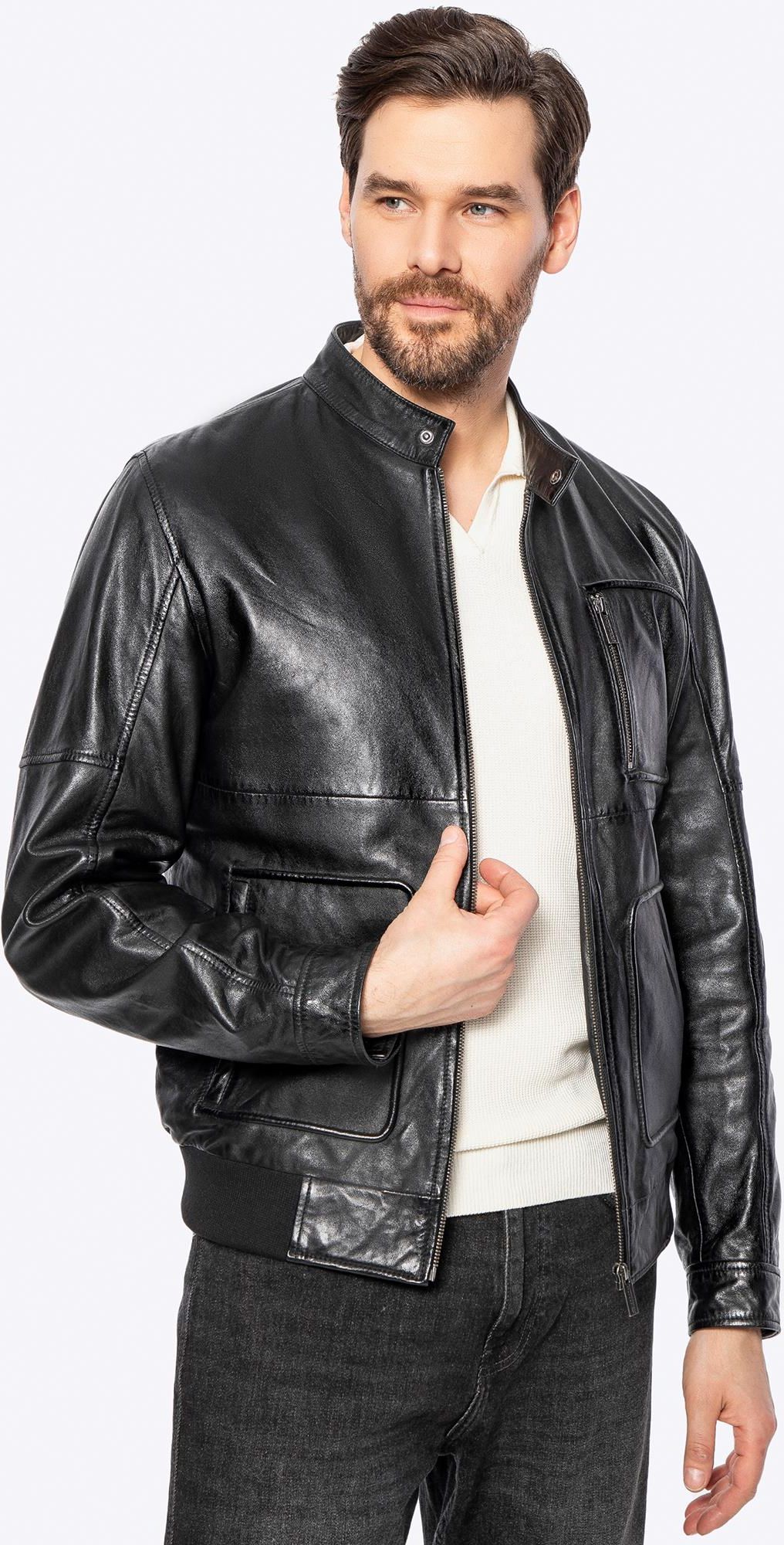 Opinie Męska kurtka ze skóry owczej z prostokątnymi kieszeniami czarna Mszczonów
