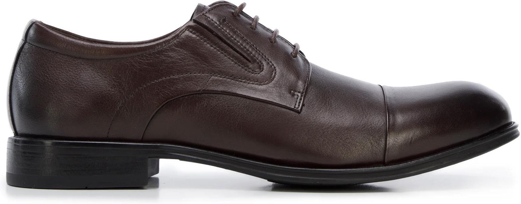 Męskie derby skórzane z wszytymi gumkami Kod produktu: 96-M-507-4-44 Męskie buty do garnituru. Te eleganckie męskie buty to obowiązkowy dodatek dla każdego szykownego mężczyzny. Wykonane zostały z wysokiej jakości skóry naturalnej, o delikatnym połysku . Przy sznurówkach mają wszyte gumki, więc łatwiej będzie je założyć. Klasyczny fason urozmaicają ozdobne przeszycia na bokach, które dodają całości charakteru. Dzięki miękkiej skórzanej wkładce i wygodnemu obcasowi komfortowo przechodzisz w nich przez wiele godzin. Męskie derby skórzane z wszytymi gumkami podkreślą stylizację z dżinsami i koszulą, możesz je nosić również do ulubionego nieformalnego garnituru. Nasza rada: będą pasowały na wiele okazji, na przykład uroczystości rodzinne lub wyjście do teatru. 100% skóra naturalna; skórzana wkładka z miękką wyściółką;podeszwa z materiału syntetycznego; gumki wszyte przy sznurówkach; nosek migdał;sznurowane. materiał: skóra naturalna waga (kg): 0,46 przybliżona wysokość obcasa (cm): 2,8 materiał dodatkowy: materiał włókienniczy typ obuwia: do garnituru, półbuty kolekcja: Obuwie kształt noska: migdałowy rodzaj obcasa: płaski obcas materiał wkładki: skóra zapięcie: sznurowane ocieplenie: nie sezon: na lato, na wiosnę, na jesień okazja: do pracy styl: eleganckie waga buta (g): 460