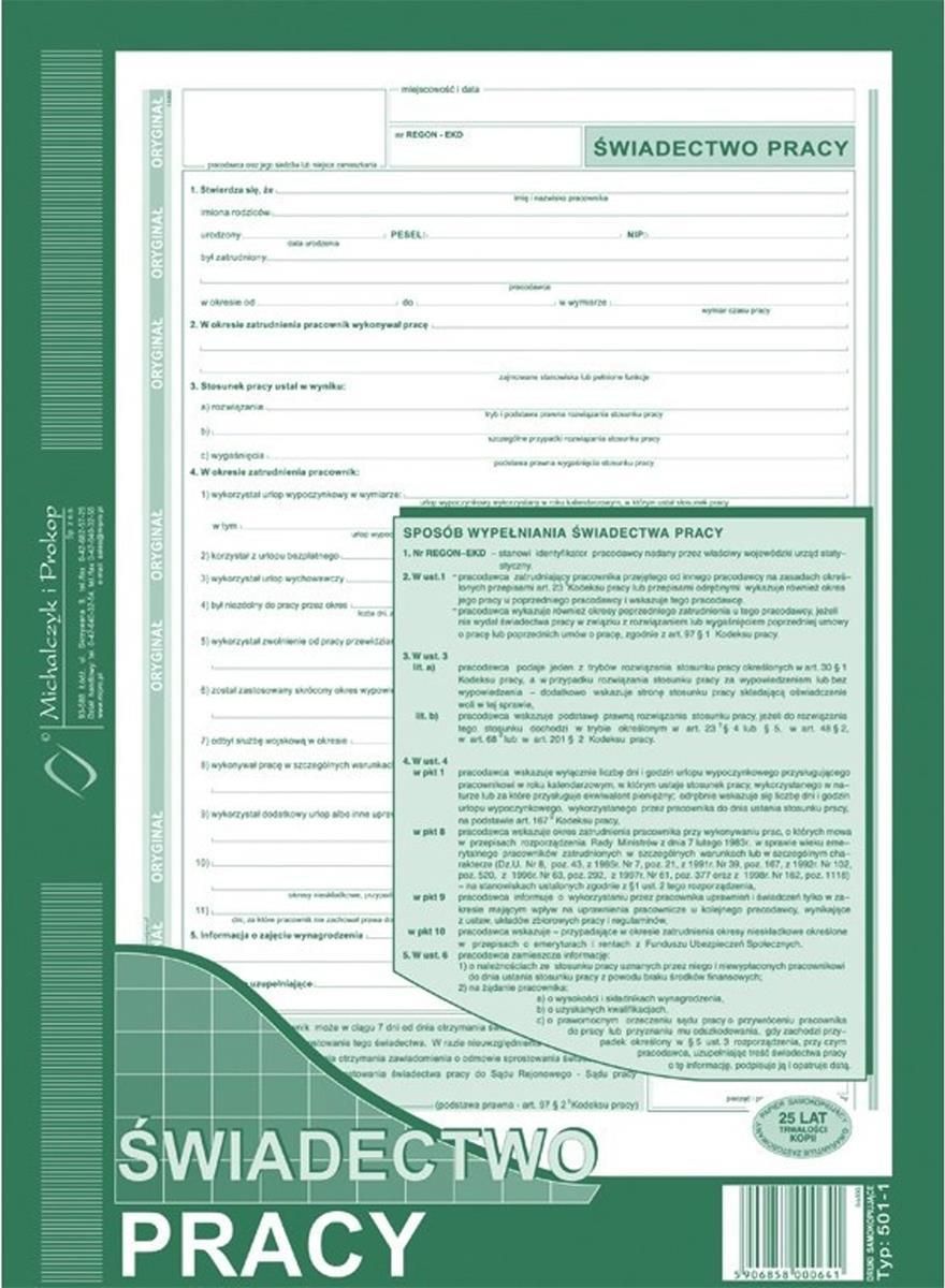 Michalczyk I Prokop Świadectwo Pracy A4 (O+1K) Mszczonów