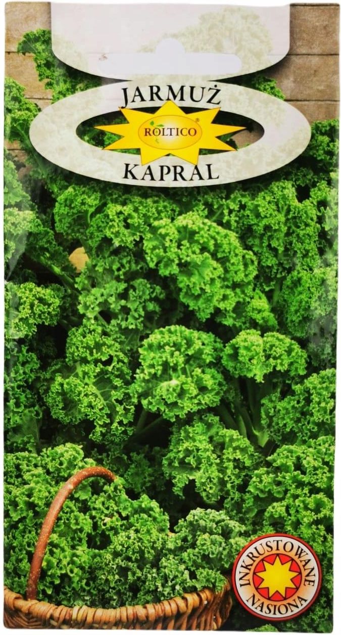 Jarmuż Kapral Roltico- nasiona 2g, inkrustowane Średnio wczesna, niska odmiana (40-60 cm), o ciemnozielonych, lśniących, mocno kędzierzawych liściach. Znosi bardzo niskie temperatury, nawet do -15°C. Jarmuż zawiera magnez, żelazo, cynk i fosfor – cenne pierwiastki niezbędne do prawidłowego funkcjonowania organizmu. Jedzenie jarmużu poprawia pracę układu sercowo-naczyniowego, udrażnia naczynia krwionośne i obniża ciśnienie tętnicze. Za sprawą zawartości witamin z grupy B, jarmuż działa także ochronnie na układ nerwowy. Witamina C natomiast, oprócz właściwości przeciwutleniających, wzmacnia układ odpornościowy i wspomaga profilaktykę miażdżycy – zmniejsza utlenianie złego cholesterolu LDL oraz wzmacnia i uszczelnia naczynia krwionośne.