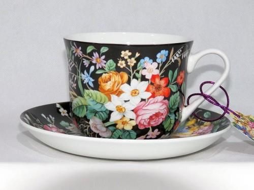 Zdjęcie P4Y Duża Filiżanka 370Ml + Spodek Kwiaty Black (1155503E52466) - Mszczonów