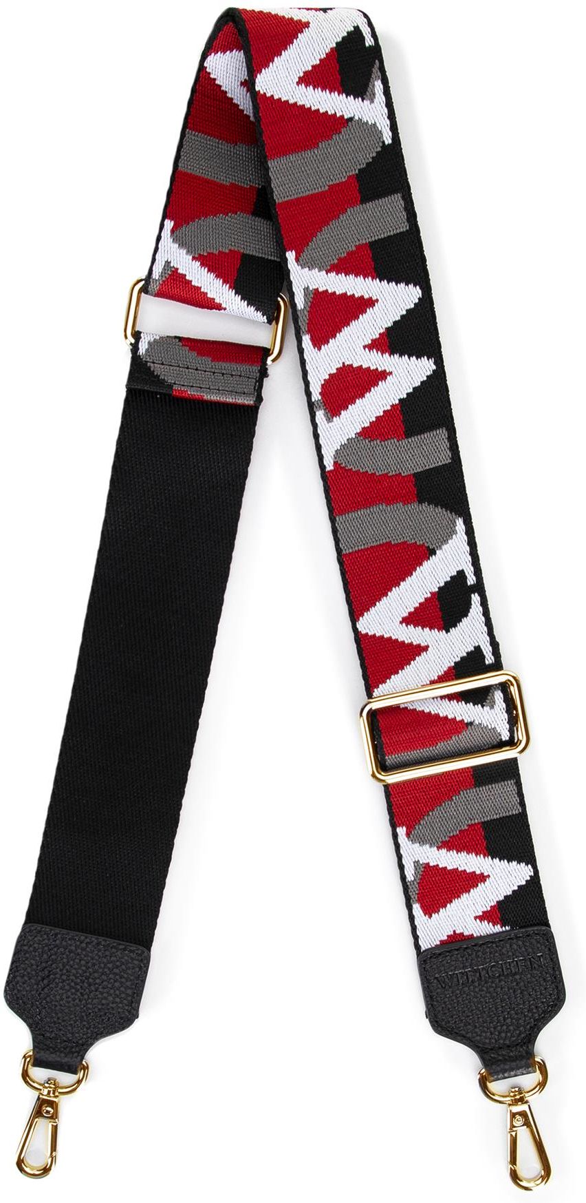 Pasek do torebki z wyszywanym logo producenta czarno - czerwony Mszczonów