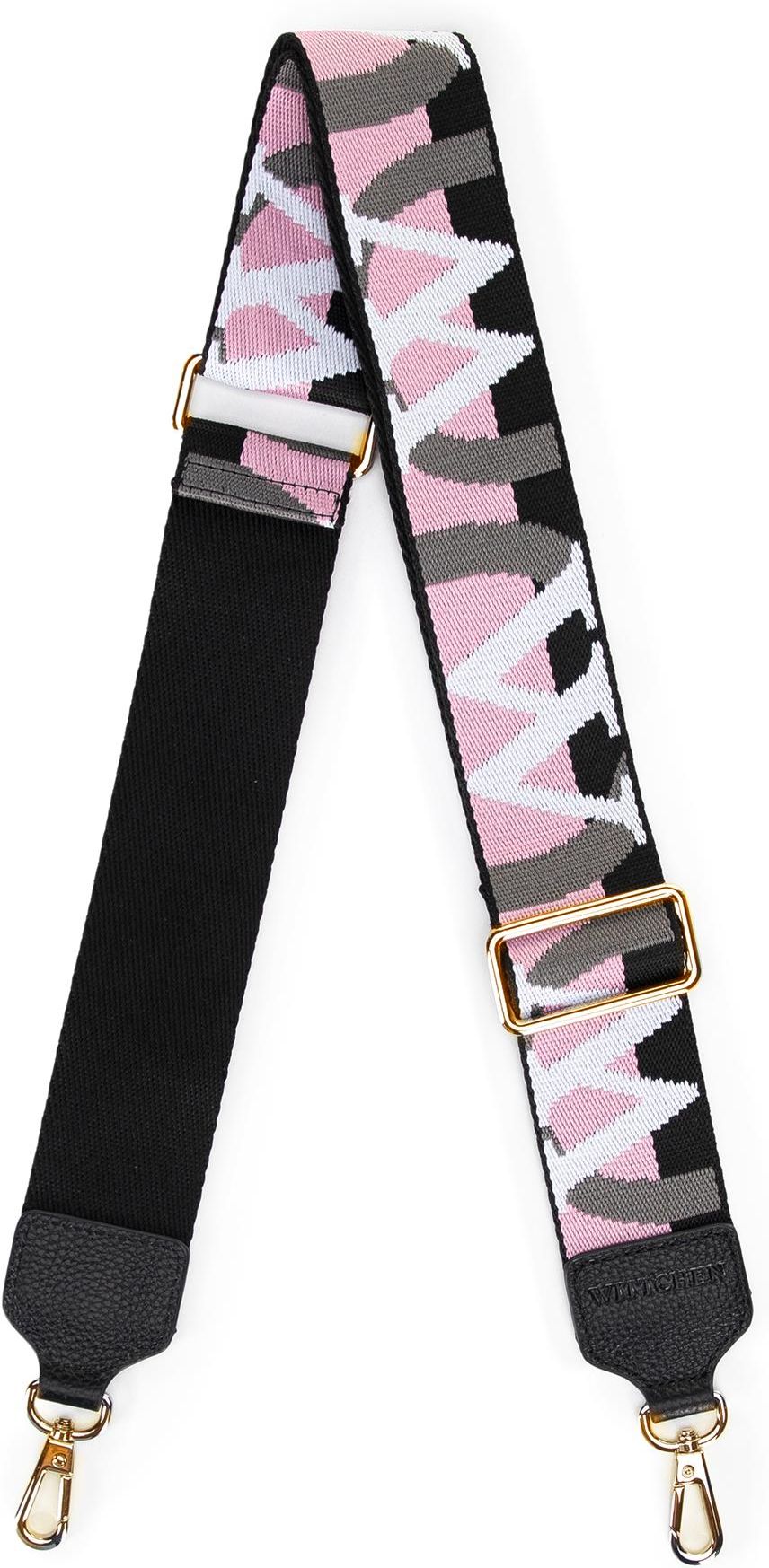 Pasek do torebki z wyszywanym logo producenta czarno - różowy Mszczonów