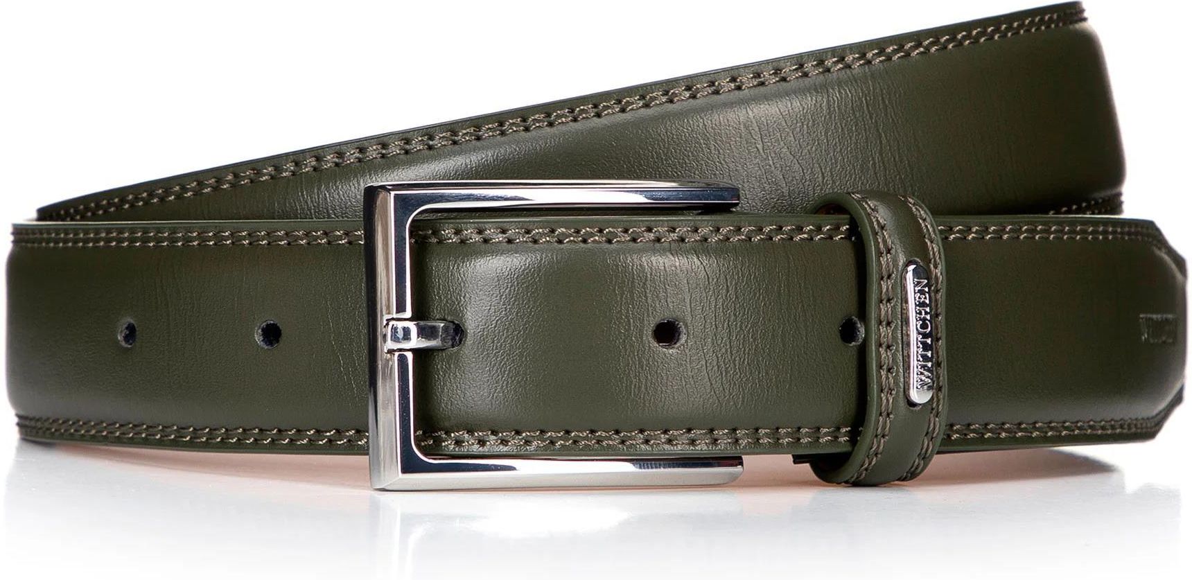 Pasek skórzany z podwójnym stębnowaniem zielony Mszczonów