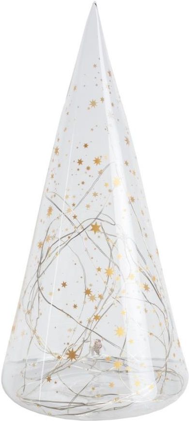 Szklana choinka XL. ​Choinka Led XL.Ta pełna uroku choinka od niemieckiej marki Raeder zdecydowanie przyciąga uwagę swoim magicznym wyglądem. Wykonana z delikatnego szkła i ozdobiona złotymi gwiazdkami, tworzy niezwykły klimat, który wprowadza nas w atmosferę świąt. Wewnątrz choinki znajduje się taśma ledowa, która emituje ciepłe, przytulne światło. Dzięki temu oświetleniu, choinka nabiera jeszcze większego uroku i staje się niezwykłą dekoracją każdego wnętrza. Duży rozmiar wprowadza Nas w magiczny klimat. Szklana choinka może okazać się naprawdę wyjątkowym upominkiem dla koleżanki z pracy lub osoby ceniącej sobie wyrafinowane dekoracje. Idealny prezent. Ta pełna magii choinka może okazać się niezwykłym prezentem dla koleżanki z pracy, przyjaciółki, mamy czy siostry. Jej elegancja i wyjątkowy klimat z pewnością zachwycą każdego, kto otrzyma ten niezwykły upominek. Nastrojowy klimat!!! Ta pełna uroku choinka od niemieckiej marki Raeder z pewnością wprowadzi każdego w nastrojowy klimat świąt.