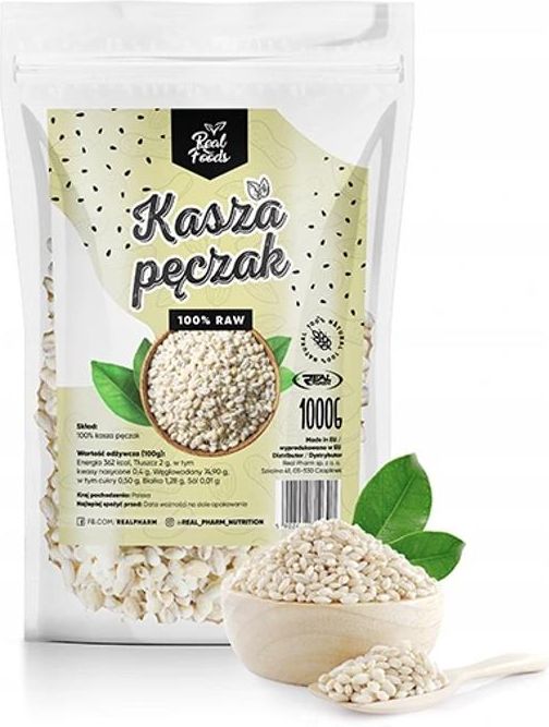 Real Foods - Kasza Pęczak 1000g Kasza pęczak, tak samo jak i inne kasze, zawiera wiele składników prozdrowotnych i wartości odżywczych. Przez wiele osób kasza pęczak jest niedoceniana i rzadko gości na naszych stołach. Szkoda, bo równie łatwo ją ugotować jak ryż, a podana z sosem czy warzywami …