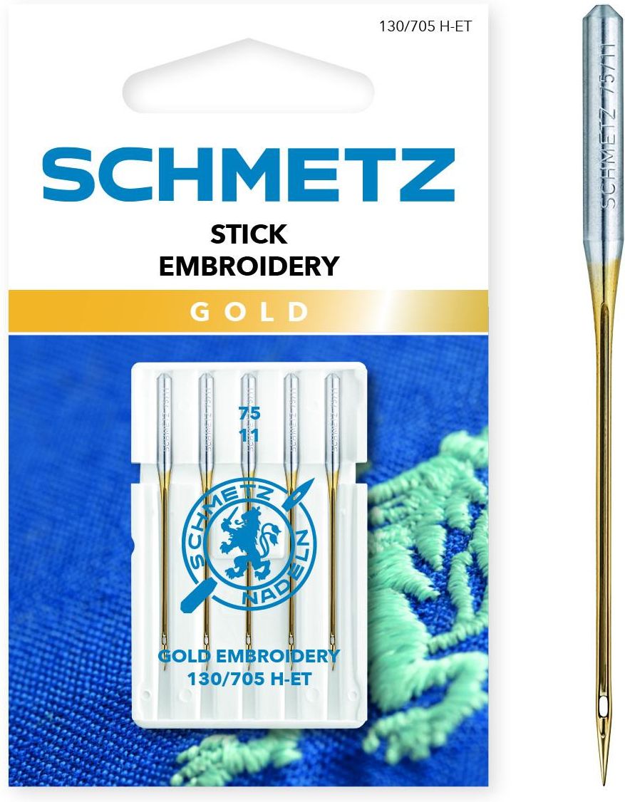 Igły SCHMETZ złote do haftu. Specjalne większe oczko do grubszych, fantazyjnych nici. Tytanowa powłoka podnosi odporność igły na ścieranie (szyjąc np. nićmi metalizowanymi). 5 szt. - 5 x grubość 75. Pasują do większości typów domowych maszyn do szycia. Warto wiedzieć: Kolory igieł - w celu …