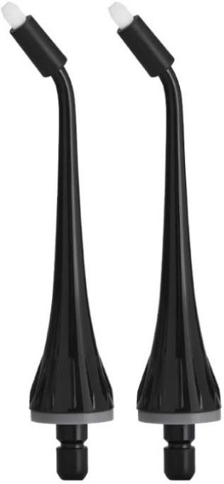Zestaw wymiennych końcówek ortodontycznych do irygatora SEYSSO Travel. Pęczek włókien ułatwia czyszczenie obszarów wokół aparatu ortodontycznego. W opakowaniu znajdują się 2 czarne końcówki.