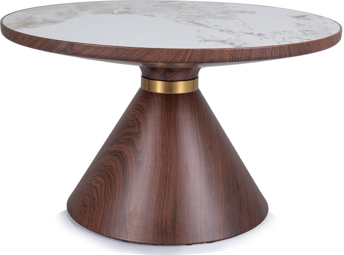 Stolik kawowy NAPA A od Signal Stolik kawowy okrągły do salonu w stylu glamour Stolik kawowy NAPA A to mebel wyróżniający się formą oraz stylem wśród dostępnych na rynku ław. Dzięki połączeniu kolorów, stolik idealnie dopasuje się do ekskluzywnych wnętrz w stylu glamour. Okrągły blat stolika sprawdzi się szczególnie w niewielkim salonie, gdyż nie zajmuje dużo miejsca, a stanowi poręczny element wyposażenia wnętrza. Dodatkowo dostępna w ofercie wersja B - inne wymiary, z którą można stworzyć zestaw. Materiał: ceramika/metal Kolor: biały połysk z efektem marmuru/ZŁOTY + BRĄZ Wymiary: wysokość: 43 cm szerokość: 70 cm głębokość: 70 cm Cechy produktu: oryginalna ława do salonu w stylu glamour ceramiczny blat modna i stylowa forma stolika do samodzielnego montażu DODATKOWE INFORMACJE: Instrukcja w języku polskim. Meble wysyłane są w paczkach do samodzielnego montażu. ARANŻACJE: