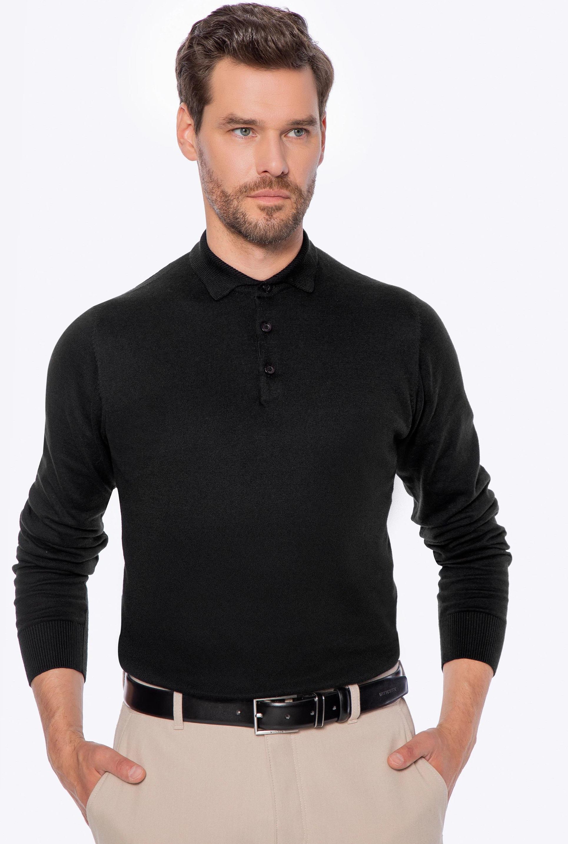 Sweter męski z bawełny z domieszką kaszmiru czarny Mszczonów