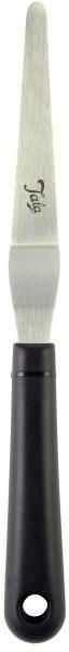 Szpatuła kątowa do dekorowania zwężana firmy Tala praktycznie wykona każde zadanie. Można nią rozprowadzić na ciastach kremy, masy, polewy, lukier, wygładzić powierzchnię ciast, serników na zimno, tafli czekoladowych. Posmarować masą wierzch muffinek, babeczek. Jest to superwygodna, wąska szpatuła, która wykonana jest ze stali nierdzewnej, rączka z tworzywa sztucznego umożliwia wygodny chwyt. Ten przyrząd powinien znajdować się w każdej kuchni osoby, która uwielbia piec. Producent nie zaleca mycia szpatuły w zmywarce do naczyń. Kolor: czarny+srebrny Wymiary: 22,7 x 2 x 1,5 cm (dł. x szer. x gł) Materiał: stal nierdzewna/ tworzywo sztuczne Opakowanie: blister