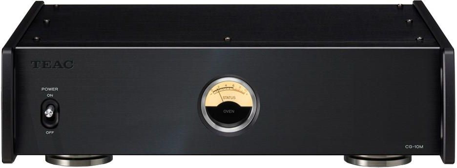 CG-10M-A to zewnętrzny zegar taktujący, który stworzony został z myślą o miłośnikach muzyki chętnie sięgających po nagrania zapisane w postaci plików high-res. Urządzenie zapewnia niesamowicie dokładny sygnał zegarowy, co pozwala przetwornikom cyfrowo-analogowym (DAC), także tych w odtwarzaczach sieciowych lub odtwarzaczach CD, wydobyć pełnię swoich możliwości. Dokładny sygnał – podstawa obróbki sygnału cyfrowego Przy odkodowywaniu cyfrowych sygnałów kluczową kwestią jest zagwarantowanie precyzyjnego sygnału taktującego. Tylko tak można zbliżyć się do brzmienia pierwowzoru. Podczas odtwarzania plików wysokiej rozdzielczości, takich jak DSD 22,5 MHz lub PCM 768 kHz, uzyskanie najdokładniejszego możliwego sygnału ma ogromne znaczenie. Oscylator kwarcowy Sercem CG-10M-A jest oscylator kwarcowy umieszczony w kontrolowanej temperaturowo obudowie, swoistym „piecu”, aby utrzymać najlepszą i najbardziej stabilną wydajność przy doskonałych warunkach temperaturowych dla oscylacji kryształu. Oscylator kwarcowy (OCXO) generuje niebywale precyzyjny sygnał zegarowy 10 MHz, który znajduje się w zakresie +/- 3ppb częstotliwościowej charakterystyki temperaturowej i +/- 0,1 ppm precyzji częstotliwościowej. Zaawansowana konstrukcja TEAC CG-10M-A może pochwalić się w pełni metalową obudową, która eliminuje ryzyko przenikania do wnętrza zakłóceń elektromagnetycznych. Energie zapewnia transformator toroidalny o dużej pojemności, a układ wewnętrzny jest całkowicie niezależny i izolowany. CG-10M-A spoczywa na trzech nóżkach, które wyróżniają się antywibracyjną konstrukcją. W centralnej części panelu frontowego inżynierowie umieścili analogowy wskaźnik, który umożliwia monitorowanie stabilności oscylacji (z możliwością jego przyciemnienia), a na tylnej ściance cztery pozłacane złącza BNC.