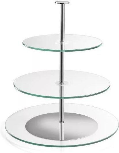 Elegancka patera ze szklanymi talerzami. Dlaczego Patera szklana 3-poziomowa DELÍCIA jest wyjątkowa? Posiada 3 umieszczone nad sobą talerze z wytrzymałego przejrzystego szkła, jest idealna do odświętnego serwowania ciasteczek czy przystawek oraz do codziennego podawania owoców itp. Szklaną …