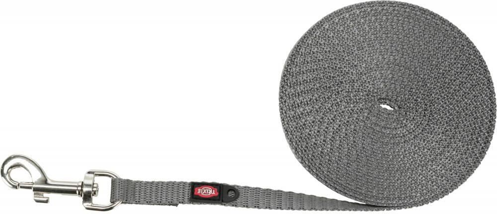 Wytrzymała, lekka smycz o długości 5 metrów, taśma szkoleniowa, treningowa, taśma do trekingu, tropienia dla małych psów, firmy TRIXIE bardzo wytrzymała, bawełniana, pleciona taśma długość: 5 m szerokość taśmy: 1 cm lekka konstrukcja, przeznaczona dla psów ras małych chromowany karabińczyk z krętlikiem, dzięki któremu smycz się nie plącze z dodatkowym, gumowym oczkiem, do którego można przyczepić adresówkę, flasher nie posiada rączki (pętli do uchwytu) smycz idealna dla wszystkich psów śledczych, do trekingu, szkolenia, tropienia oraz zabawy kolor szary jakość gwarantowana przez firmę TRIXIE producent: TRIXIE kod produktu: TX-19800