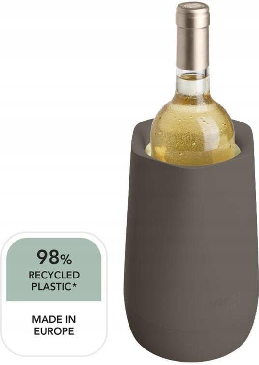 Aktywny chłodnik, bez lodu schładza w 5 minut przechowywać w zamrażarce koniec z przepełnioną lodówką »Aktiv Hexo« Chłodziarka do wina schładza wino w kilka minut i utrzymuje je chłodne przez wiele godzin. Elegancka obudowa zawiera aktywny element chłodzący, który utrzymuje butelkę w idealnej temperaturze serwowania nawet przez 90 minut. Dla najlepszego efektu przechowuj element chłodzący przez co najmniej 6 godzin w zamrażarce. Łatwa w użyciu: 2 w 1 chłodzenie butelek z winem. Obudowa z aktywnym elementem chłodzącym wewnątrz Trwała konstrukcja z 98% plastiku z recyklingu Wysoka jakość: stylowy, trwały design holenderski Aktywny element chłodzący pasuje do butelek z winem o pojemności 0,71 l. Po użyciu zdejmij chłodnicę z butelki, spłaszcz ją i włóż z powrotem do zamrażarki. Wysokość: 213 mm ø: 136 mm Kolor: grafitowy Materiał: tworzywo sztuczne