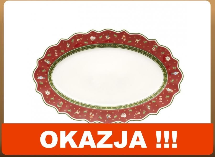 OFERTA WAŻNA TYLKO DO WYCZERPANIA ZAPASÓWŚwięta Bożego Narodzenia to niepodważalnie jeden z najmilszych momentów w roku. Cudowne ciepło rozchodzi się po wszystkich kątach, wyjątkowa aura przepełnia każde miejsce, wszędzie widać, czuć i słychać bożonarodzeniową magię. Villeroy&Boch pragnie z Tobą dzielić ten świąteczny czas. To rodzinna firma, która rozumie ideę Świąt Bożego Narodzenia i celebruje ją z należytym szacunkiem. By uczcić ten wyjątkowy czas, stworzyła magiczną kolekcję porcelany stołowej, która z pewnością trafi nawet w najbardziej wyrafinowane gusta. Pozwól, aby bożonarodzeniowe dodatki rozświetliły Twój dom. Czujesz już unoszący się zapach, jeszcze ciepłych, świeżo wypiekanych pierniczków? Kolekcja Toy’s Delight to nie lada gratka dla wielbicieli i użytkowników porcelany Villeroy&Boch. W tej świątecznej kolekcji znajdziesz całą masę talerzyków, pater, półmisków czy misek. Villeroy&Boch także tym razem nie zapomniał o szczegółach. Niezwykłe kształty ozdobione pięknymi wzorami utrzymanymi w magicznej, ciepłej kolorystyce Świąt nadają wymarzony klimat rodzinnym spotkaniom. Obowiązkowy podczas każdej Wigilii barszcz doczekał się nawet specjalnej wazy, z której śmiało możesz nalewać swoją aromatyczną zupę do pięknych bulionówek. A Twoje pierniczki? Za sprawą ozdobnych słoi na długo zachowają swoją świeżość. Święta tuż, tuż… Znajdź swoje najpiękniejsze dodatki i ciesz się bożonarodzeniową magią razem ze swoją rodziną. Życzymy samych dobroci! Właściwości: - wymiary: 50 x 31 cm, - wysokiej jakości porcelana PREMIUM - można myć w zmywarce - produkt może być używany w kuchence mikrofalowej - każdy produkt posiada oryginalne logo, rok założenia firmy, a także miejsce produkcji Już od ponad sześciu lat jesteśmy oficjalnym dystrybutorem marki Villeroy&Boch w Polsce. Kupując w naszym sklepie, mają Państwo gwarancję zakupu oryginalnego produktu. Dziękujemy za zaufanie. Jeżeli masz jeszcze jakieś pytania - napisz lub zadzwoń! tel. 660 56 57 58 e-mail: bok@kuchniapremium.pl