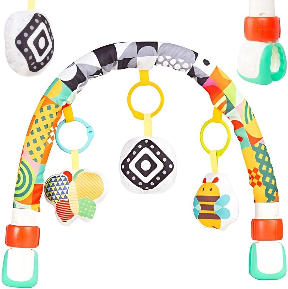 Pałąk edukacyjny to idealna zabawka dla najmłodszych, która wspiera rozwój dziecka już od pierwszych dni życia. Dzięki kolorowym wzorom i miękkim zawieszkom maluszek poznaje kształty, kolory i faktury, rozwijając przy tym zmysły. Zabawka może być łatwo przymocowana do wózka, łóżeczka lub fotelika, zapewniając dziecku atrakcję w domu i w podróży. Różnorodne elementy zachęcają do chwytania, obserwowania i dotykania, co wspiera rozwój motoryki małej. To bezpieczna i funkcjonalna propozycja, która łączy zabawę z nauką. Charakterystyka ✔️ Pałąk edukacyjny dla niemowląt z kolorowymi wzorami ✔️ 3 miękkie zawieszki – pszczółka, kontrastowa kostka, piłeczki ✔️ Żywe kolory i kontrastowe wzory przyciągają uwagę dziecka ✔️ Pasuje do wózka, łóżeczka, fotelika ✔️ Wymiary pałąka: ok. 43 × 35 × 5 cm ✔️ Wymiary opakowania: 28 × 6,5 × 36 cm ✔️ Bezpieczne materiały – produkt przeznaczony od 0+ Zabawka rozwija ⭐ Zmysł wzroku – kontrastowe wzory i kolory stymulują rozwój oczu ⭐ Zmysł dotyku – różnorodne faktury wspierają rozwój sensoryczny ⭐ Koordynację wzrokowo-ruchową – zachęca do chwytania i obserwacji ⭐ Motorykę małą – ćwiczenie paluszków i rączek dziecka ⭐ Umiejętność koncentracji i skupienia uwagi [img-132910-left-thickbox_default] [img-132909-left-thickbox_default]