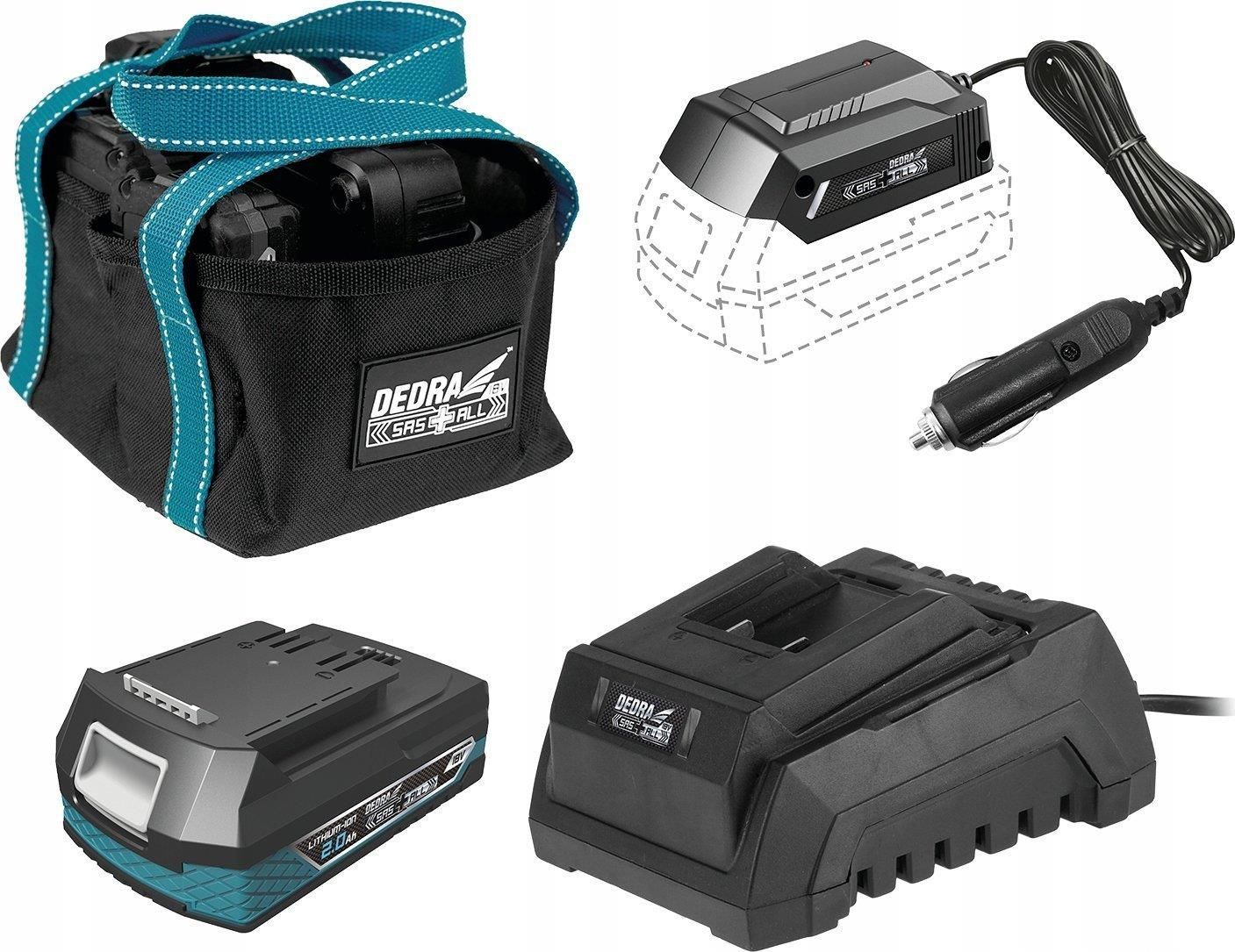 Zestaw startowy DED7002B + DED7038 + DED7032 + DED7038A – kompletny pakiet zasilania Dedra SAS+ALL Zestaw startowy Dedra SAS+ALL DED7002B + DED7038 + DED7032 + DED7038A – pełne, mobilne zasilanie 18V dla Twoich elektronarzędzi Zestaw startowy DED7002B + DED7038 + DED7032 + DED7038A to kompletny pakiet zasilania dedykowany do systemu narzędzi akumulatorowych Dedra SAS+ALL 18Vkumulator 2.0Ah 18V Li-Ion DED7032, ładowarka sieciowa DED7038, ładowarka samochodowa DED7038A oraz praktyczna torba na dwa akumulatory DED7002B. Dzięki temu od razu po zakupie możesz w pełni korzystać z elektronarzędzi Dedra, zarówno w warsztacie, jak i w terenie, bez konieczności dokupowania osobnych źródeł zasilania. W zestawie Akumulator 2.0Ah 18V Li-Ion DED7032, Ładowarka DED7038, Ładowarka samochodowa DED7038A, Torba na dwa akumulatory DED7002B. Co to jest Zestaw startowy DED7002B + DED7038 + DED7032 + DED7038A? Jest to profesjonalny zestaw akumulatorowy przeznaczony dla użytkowników systemu Dedra SAS+ALL, którzy oczekują niezawodnego i wszechstronnego zasilania narzędzi. Pakiet obejmuje nie tylko akumulator litowo-jonowy o pojemności 2.0Ah, ale także dwie ładowarki – do standardowego gniazda sieciowego 230V oraz do gniazda zapalniczki samochodowej 12V. Całość uzupełnia wytrzymała torba umożliwiająca wygodne przechowywanie i transport do dwóch akumulatorów. Gdzie stosuje się zestaw startowy Dedra SAS+ALL? Zestaw montuje się i wykorzystuje wszędzie tam, gdzie używasz elektronarzędzi z linii Dedra SAS+ALL 18V: w warsztatach, na budowie, przy pracach montażowych, w garażu, ogrodzie czy podczas prac serwisowych w terenie. Akumulator DED7032 współpracuje z szeroką gamą narzędzi Dedra SAS+ALL (wiertarko-wkrętarki, szlifierki, piły, klucze udarowe i inne), a ładowarki zapewniają szybkie uzupełnienie energii z sieci lub z samochodu. Zastosowanie zestawu zasilanie elektronarzędzi Dedra SAS+ALL 18V w profesjonalnych warsztatach i na budowie, domowe majsterkowanie – wiercenie, wkręcanie, cięcie, szlifowanie, prace ogrodowe i wokół domu, gdzie liczy się mobilność bez przewodu, serwis i montaż w terenie – możliwość ładowania akumulatora z gniazda samochodowego, bezpieczny transport i przechowywanie akumulatorów w torbie DED7002B. Zestaw startowy Dedra SAS+ALL DED7032 – akumulator 18V 2.0Ah Li-Ion gwarantujący moc i mobilność Serce zestawu stanowi akumulator litowo-jonowy 18V o pojemności 2.0Ah (model DED7032). Technologia Li-Ion zapewnia wysoką gęstość energii, brak efektu pamięci oraz niskie samorozładowanie, dzięki czemu akumulator jest gotowy do pracy nawet po dłuższym okresie nieużywania. Pojemność 2.0Ah to optymalny kompromis pomiędzy czasem pracy a masą ogniw – narzędzie pozostaje lekkie, poręczne i wygodne w manewrowaniu, co docenią zarówno profesjonaliści, jak i użytkownicy domowi. Trzy kluczowe korzyści akumulatora DED7032 Stabilna moc 18V – zapewnia wydajne zasilanie wiertarko-wkrętarek, wkrętarek udarowych, szlifierek kątowych czy pił tarczowych z serii SAS+ALL, umożliwiając szybkie wiercenie w drewnie, metalu i tworzywach. Optymalna pojemność 2.0Ah – idealna do typowych zadań domowych i warsztatowych: montaż mebli, skręcanie konstrukcji drewnianych, drobne prace remontowe czy montaż osprzętu elektrycznego. Bezobsługowa technologia Li-Ion – brak konieczności pełnego rozładowywania, brak efektu pamięci i szybkie ładowanie sprawiają, że korzystanie z zestawu jest wygodne i ekonomiczne. Przykłady codziennego zastosowania montaż szafek kuchennych i systemów zabudowy z użyciem wiertarko-wkrętarki Dedra SAS+ALL 18V, naprawy w garażu – dokręcanie śrub, montaż półek, prace przy bramie garażowej, prace ogrodowe – montaż pergoli, wiat, ogrodzeń panelowych czy drewnianych tarasów. Ładowarka sieciowa DED7038 – szybkie i bezpieczne ładowanie z gniazda 230V Ładowarka DED7038 została zaprojektowana specjalnie do akumulatorów systemu Dedra SAS+ALL 18V. Umożliwia wygodne i szybkie ładowanie akumulatora DED7032 w standardowym gnieździe sieciowym 230V. Konstrukcja ładowarki zapewnia stabilny prąd ładowania, ochronę przed przegrzaniem oraz przed przeładowaniem, co znacząco wydłuża żywotność ogniw. Najważniejsze zalety ładowarki DED7038 Dedykowana do akumulatorów SAS+ALL 18V – gwarantuje pełną kompatybilność i bezpieczeństwo pracy z pakietami Dedra, w tym z dołączonym akumulatorem 2.0Ah. Kontrola procesu ładowania – wbudowane zabezpieczenia oraz sygnalizacja świetlna (LED) informują o stanie pracy, ograniczając ryzyko uszkodzenia akumulatora. Kompaktowa i stabilna konstrukcja – ładowarka zajmuje niewiele miejsca na blacie warsztatowym, a szeroka podstawa zapewnia stabilność nawet przy częstym wkładaniu i wyjmowaniu akumulatora. Zastosowanie w praktyce ładowanie akumulatora po zakończeniu prac remontowych w domu, aby narzędzie było gotowe na kolejne zadania, stałe wyposażenie warsztatu lub firmy remontowo-budowlanej – jedno miejsce, w którym zawsze doładowujesz swoje akumulatory SAS+ALL, ładowanie zapasowych akumulatorów podczas pracy – gdy jeden pracuje w narzędziu, drugi jest w tym czasie ładowany na stanowisku. Ładowarka samochodowa DED7038A – pełna mobilność i praca w terenie bez dostępu do sieci Kluczowym atutem zestawu jest ładowarka samochodowa DED7038A, która umożliwia ładowanie akumulatora 18V bezpośrednio z gniazda zapalniczki samochodowej 12V. Dzięki niej praca z elektronarzędziami akumulatorowymi Dedra nie jest już ograniczona brakiem zasilania sieciowego – wystarczy samochód osobowy, dostawczy lub bus firmowy. Trzy najważniejsze cechy ładowarki DED7038A Mobilność – idealna na budowę, do pracy na wysokości, w terenie otwartym, przy montażu ogrodzeń czy konstrukcji stalowych z dala od budynków. Bezpieczeństwo ładowania – odpowiednio dobrany prąd ładowania oraz zabezpieczenia chroni