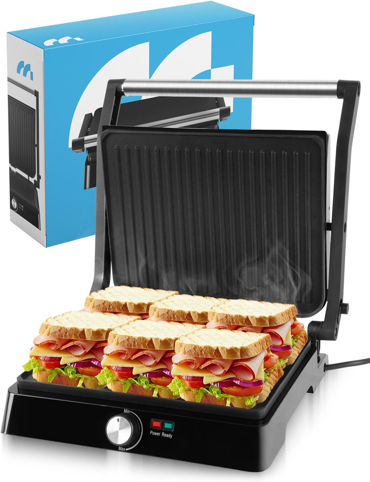 GRILL ELEKTRYCZNY OPIEKACZ TOSTER DO KANAPEK PANINI ROZKŁADANY MOCNY 2200W REGULOWANA MOC DO 2200W DUŻA POWIERZCHNIA GRZEWCZA NIEPRZYWIERAJĄCA POWŁOKA PŁYNNA REGULACJA TEMPERATURY TEFLONOWE PŁYTY GRZEWCZE RUCHOME ZAWIASY I OTWARCIE 180° KONTROLKI LED TACKA NA TŁUSZCZ UCHWYT Z METALOWYM WYKOŃCZENIEM …