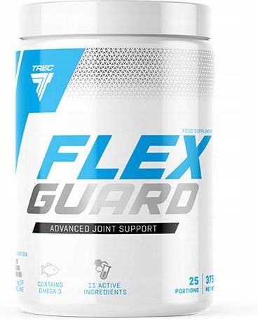 Regeneracja Stawów Kompleks Trec Nutrition Flex Guard 375g Jagoda Producent: Trec Nutrition Waga: 375g Smak: Owoce leśne FLEX GUARD to zaawansowany suplement diety łączący w sobie hydrolizowany kolagen, MSM, glukozaminę, L-prolinę, omega-3, chondroitynę oraz kwas hialuronowy. Zawarta w nim witamina C wspiera endogenną syntezę kolagenu, kluczowego dla zdrowia chrząstki i kości. Poprawia jakoś skóry Wspiera zdrowie stawówó Wpływa na poprawę włosów i paznokci Zalecane spożycie Rekomendowana dzienna ilość do spożycia wynosi 15 g. Składniki Hydrolizat kolagenu typu I SOLUGEL®; maltodekstryna; MSM (metylosulfonylometan); regulator kwasowości (kwas cytrynowy); siarczan glukozaminy 2KCl; hydrolizat kolagenu typu II; L-prolina; koncentrat soku z buraka dla smaku owoców leśnych; magnez (sole magnezowe kwasu cytrynowego); MEG-3™ 30 % B POWDER – mikrokapsułkowany olej rybi [60 % rafinowany olej rybi; żelatyna; regulatory kwasowości (askorbinian sodu, kwas cytrynowy); olej rzepakowy; aromat; przeciwutleniacz (tokoferole); olej słonecznikowy]; regulator kwasowości (kwas jabłkowy); wapń (sole wapniowe kwasu ortofosforowego); aromaty; siarczan chondroityny; witamina C (kwas L-askorbinowy); barwnik dla smaku mango-pomarańcza (beta-karoten); substancja słodząca (sukraloza); hialuronian sodu. Wartość odżywcza na 15g Hydrolizat Kolagenu Typu I 7000,00 mg MSM 750,00 mg Siarczan Glukozaminy 2KCl 500,00 mg w tym D-glukozamina 296,00 mg Hydrolizat Kolagenu Typu II 500,00 mg L-Prolina 500,00 mg Siarczan Chondroityny 150,00 mg Wapń 120,00 mg (15%*) Witamina C 60,00 mg (75%*) Magnez 55,00 mg (15%*) Kwasy Tłuszczowe Omega-3 54,00 mg w tym EPA 16,20 mg w tym DHA 10,80 mg Kwas Hialuronowy 20,00 mg *RWS- Referencyjna wartość spożycia Nie stosować w przypadku uczulenia na którykolwiek ze składników produktu. Produkt nie może być stosowany przez kobiety w ciąży i matki karmiące oraz dzieci. Nie przekraczać zalecanej do spożycia dziennej porcji produktu. Suplement diety nie może być stosowany jako substytut lub zamiennik zróżnicowanej diety. Zalecany jest zrównoważony sposób żywienia i zdrowy tryb życia. Przechowywać w suchym i chłodnym miejscu, w sposób niedostępny dla małych dzieci. Chronić przed bezpośrednim działaniem promieni słonecznych.