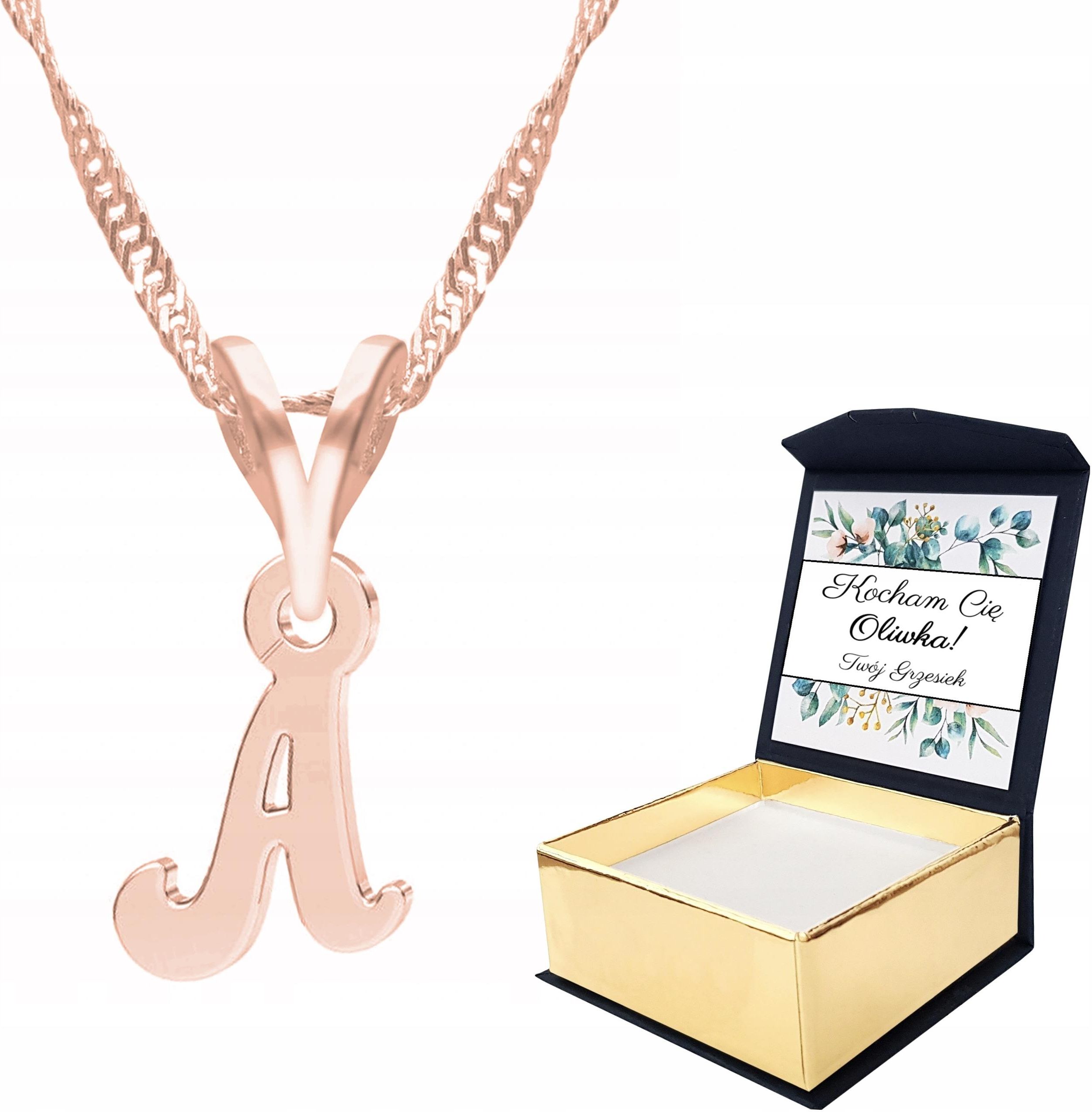 Larezo Naszyjnik różowe złoto Literka A + WŁASNY NADRUK Muszyna